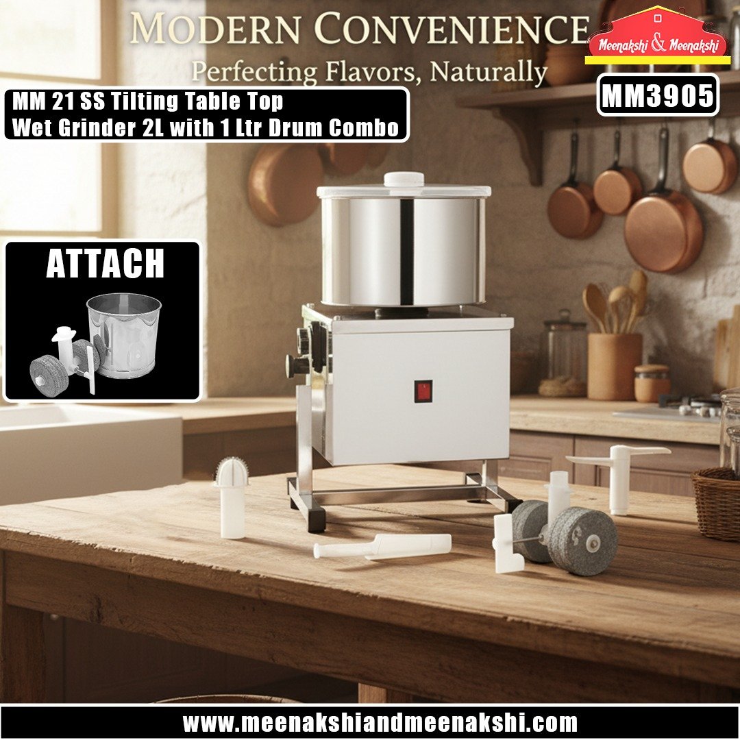 MM 21 SS Tilting Table Top Wet Grinder 2L with 1 Ltr Dr...