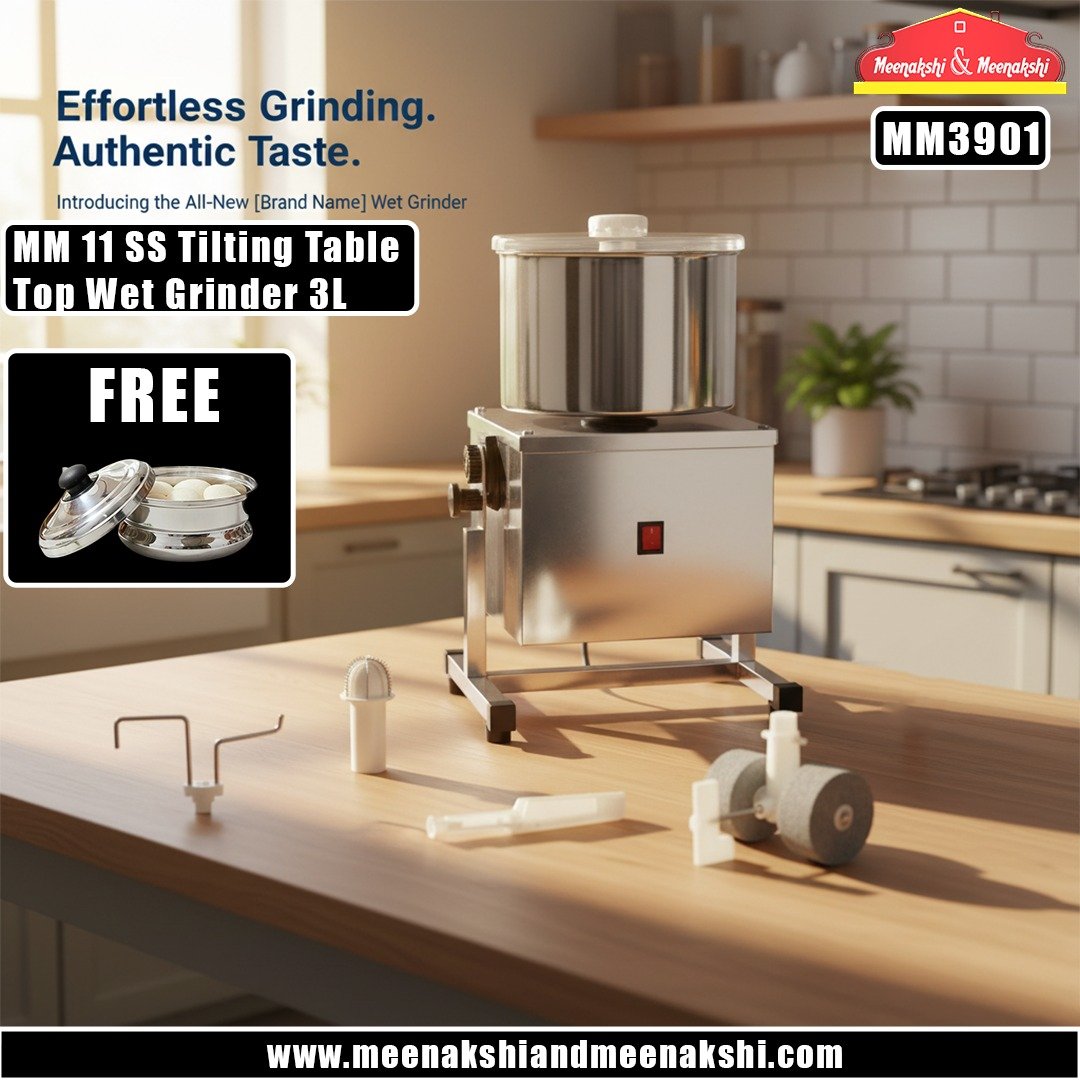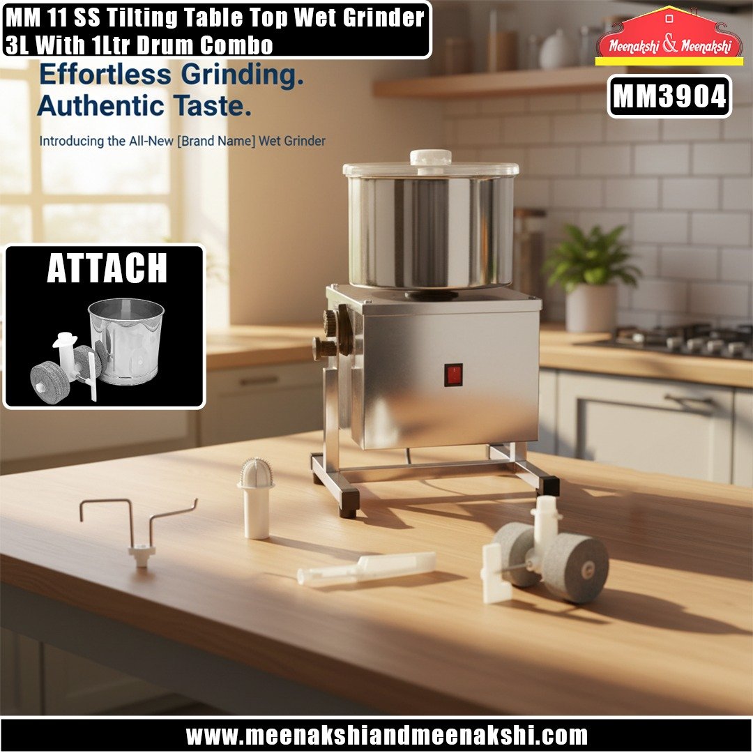 MM 11 SS Tilting Table Top Wet Grinder 3L With 1Ltr Dru...