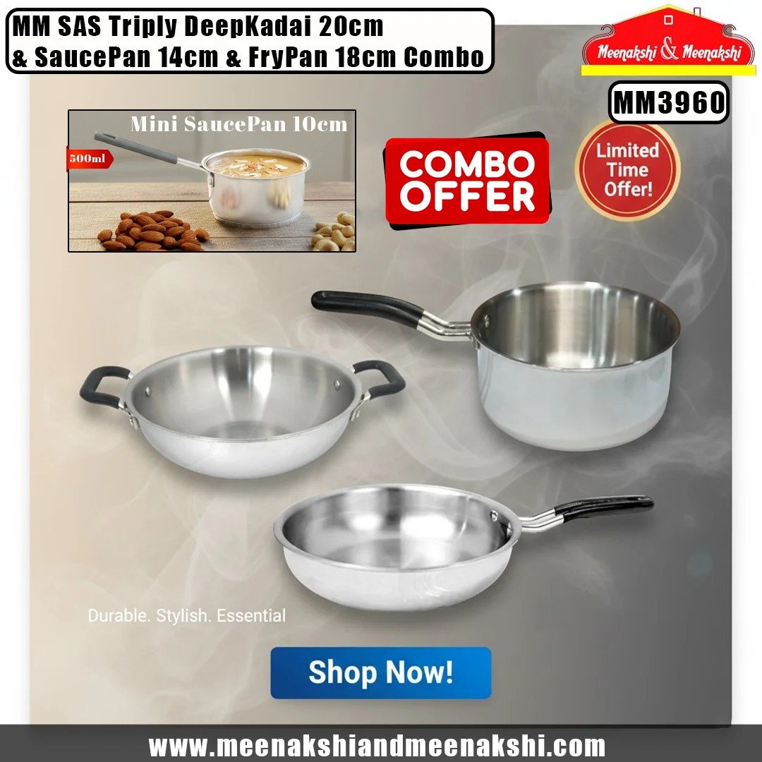 MM SAS N 3PCS Triply Mini Kadai & SaucePan & FryPan Com...