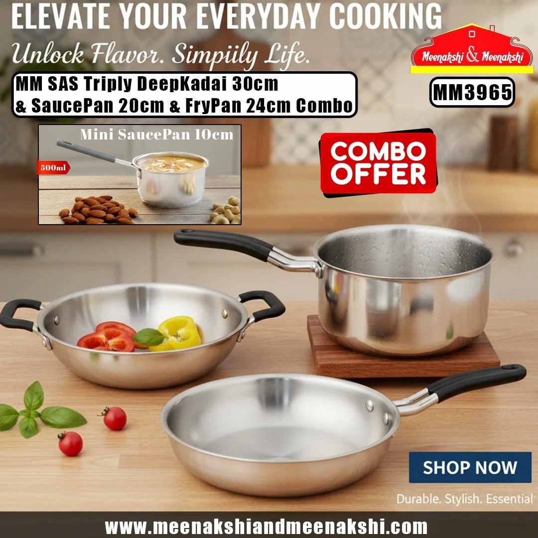 MM SAS Triply DeepKadai 30cm & SaucePan 20cm & FryPan 2...