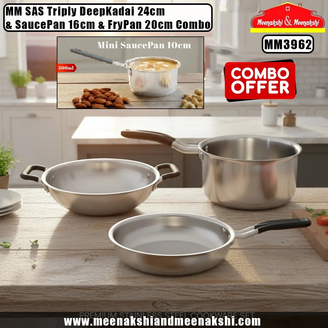 MM SAS N 3PCS Triply Baby Kadai & SaucePan & FryPan Com...