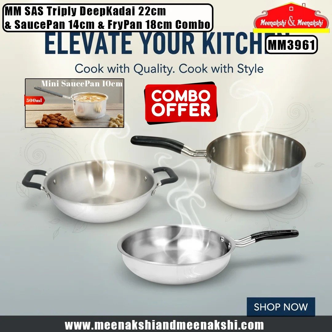 MM SAS Triply DeepKadai 22cm & SaucePan 14cm & FryPan 1...