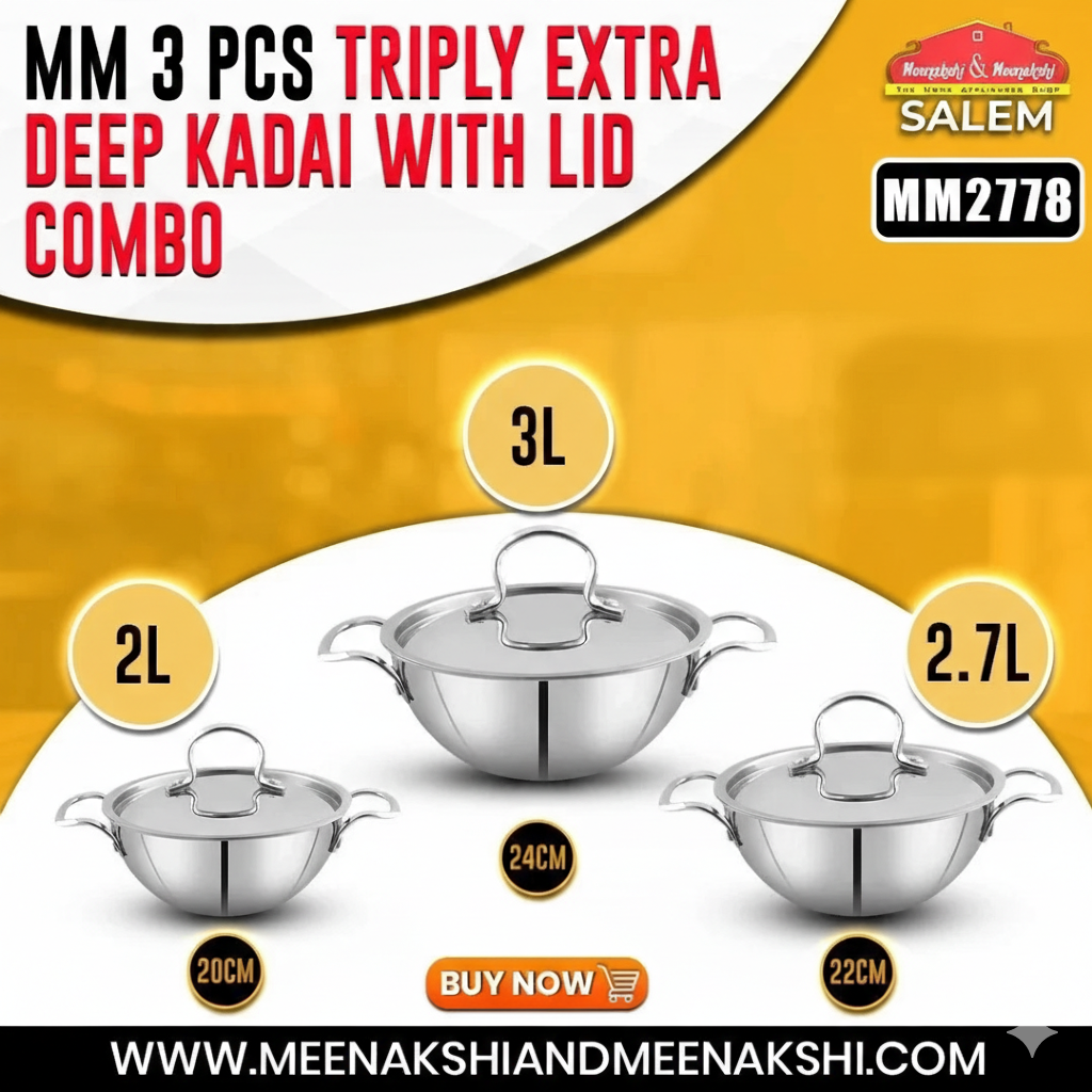 MM 3Pcs Triply Extra Deep Kadai With Lid COMBO MM2778