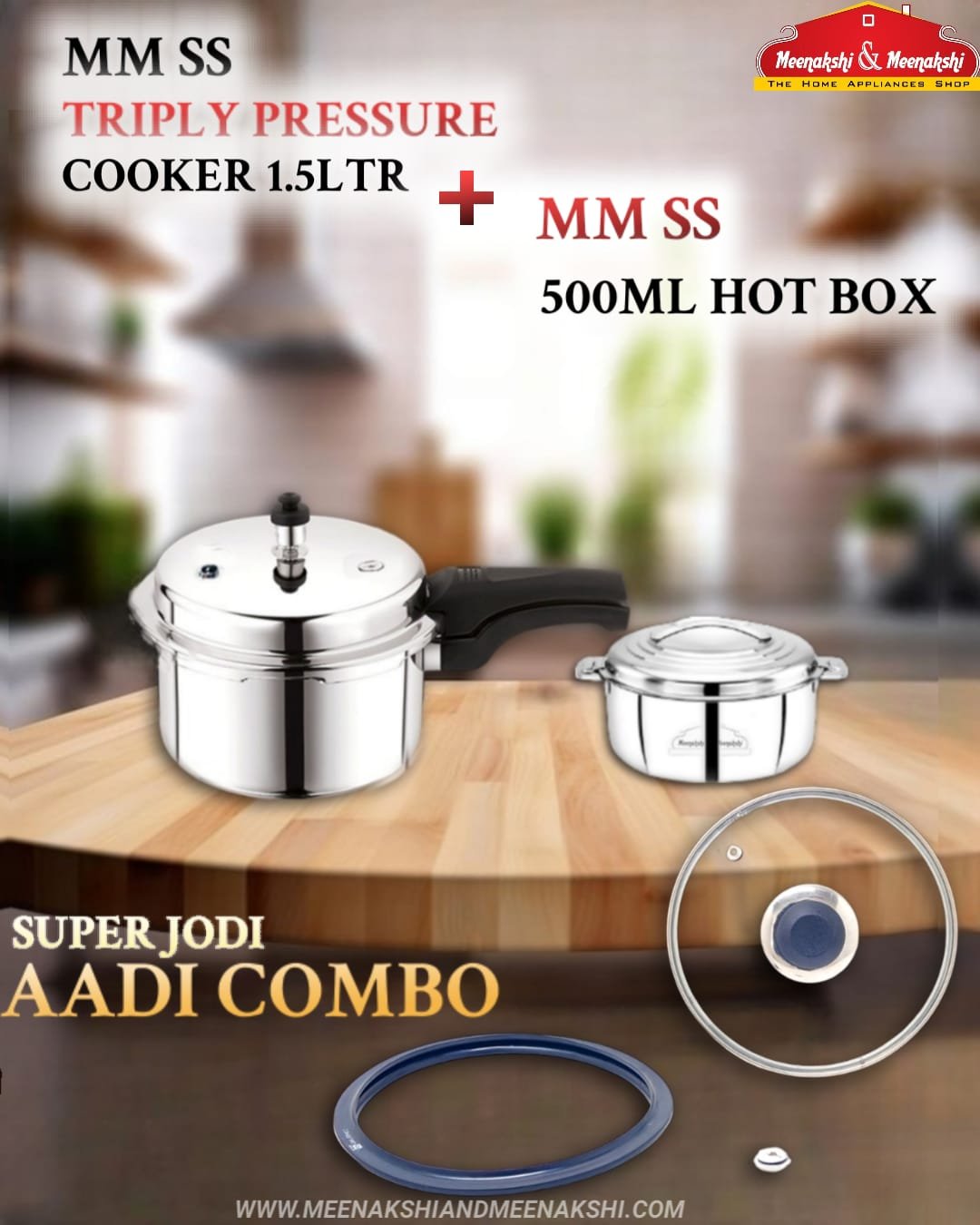MM SS Triply Pressure Cooker 1.5L + SS 500ml Hot Box MM...