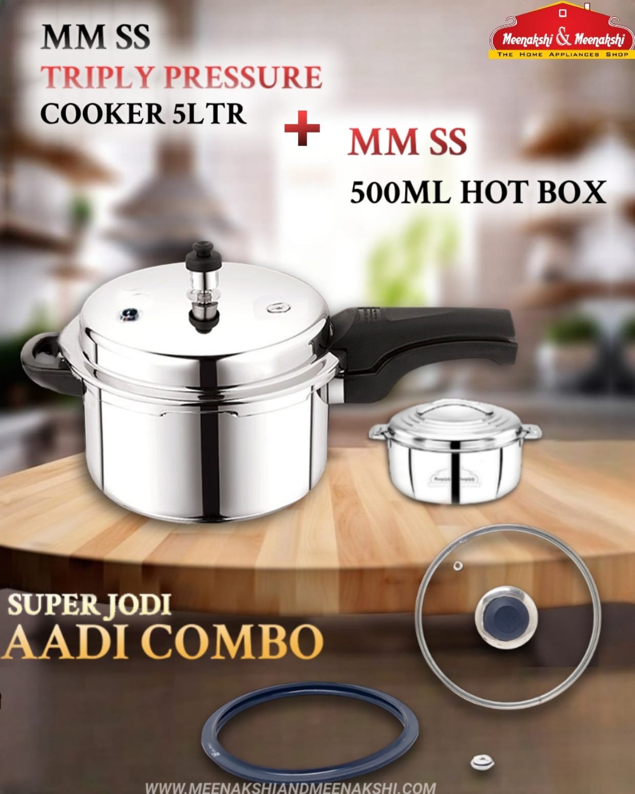 MM SS Triply Pressure Cooker 5L + SS 500ml Hot Box MM13...