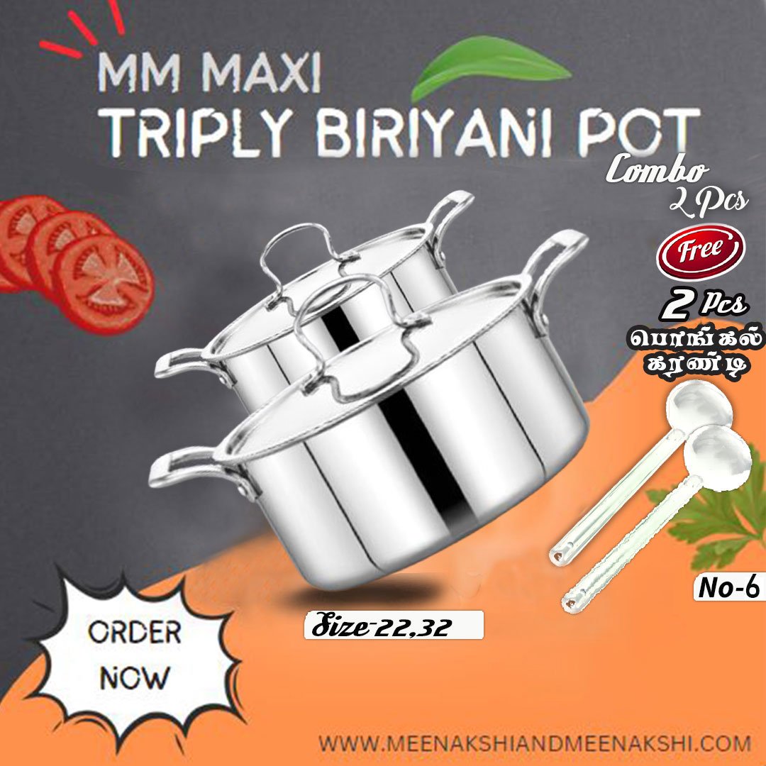 MM MAXI TRIPLY BIRIYANI POT 22CM & 32CM Combo