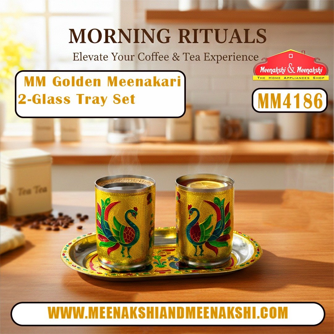 MM Golden Meenakari 2-Glass Tray Set MM4186