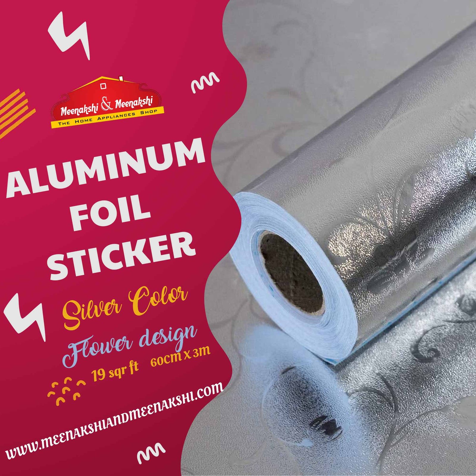 Aluminum Foil Sticker Silver Color Flower Design 60 cm ...