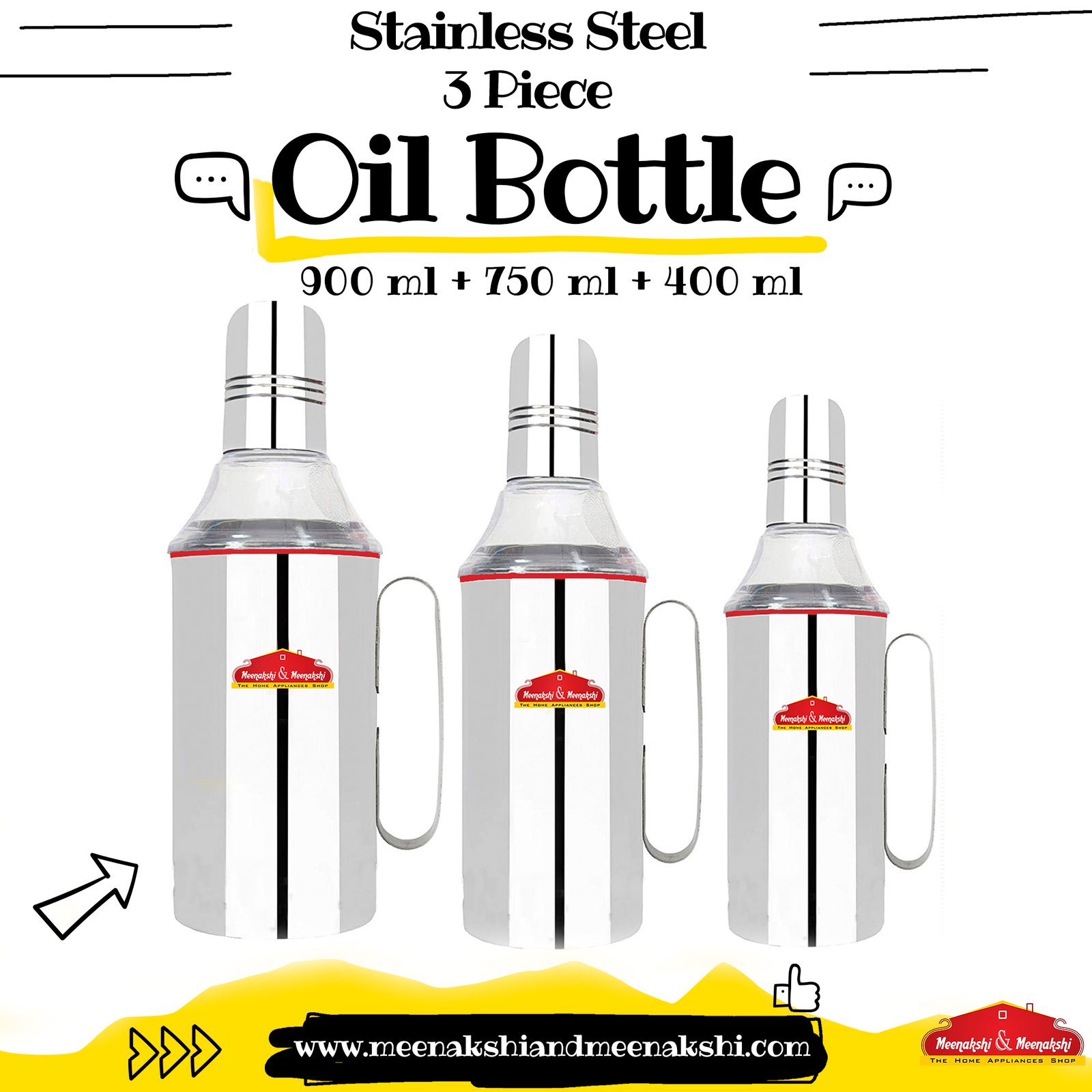 MM Oil Can with Handle 900 ml + 750 ml + 400 ml
