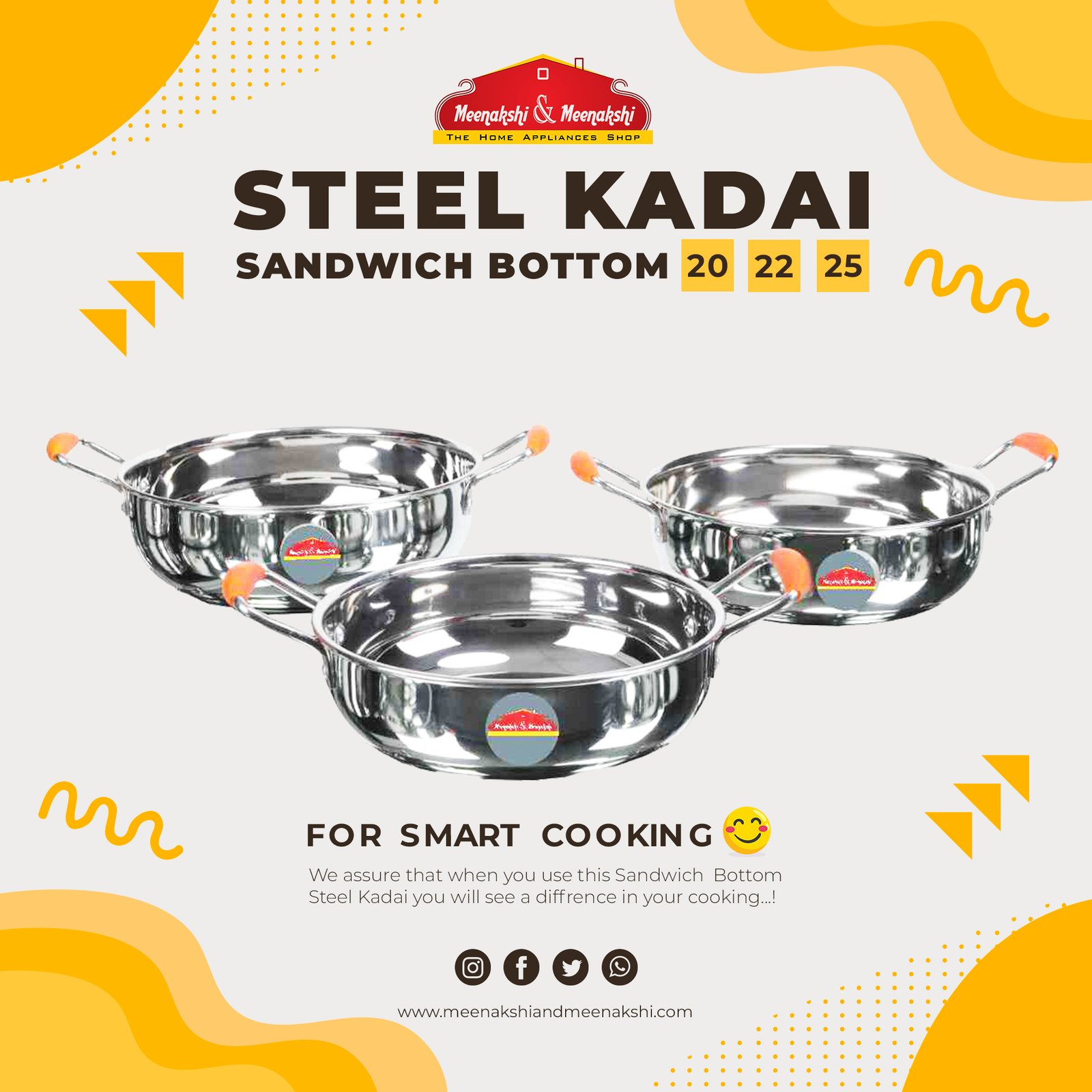 MM Steel Kadai 3pcs Combo 20cm + 22cm + 25cm