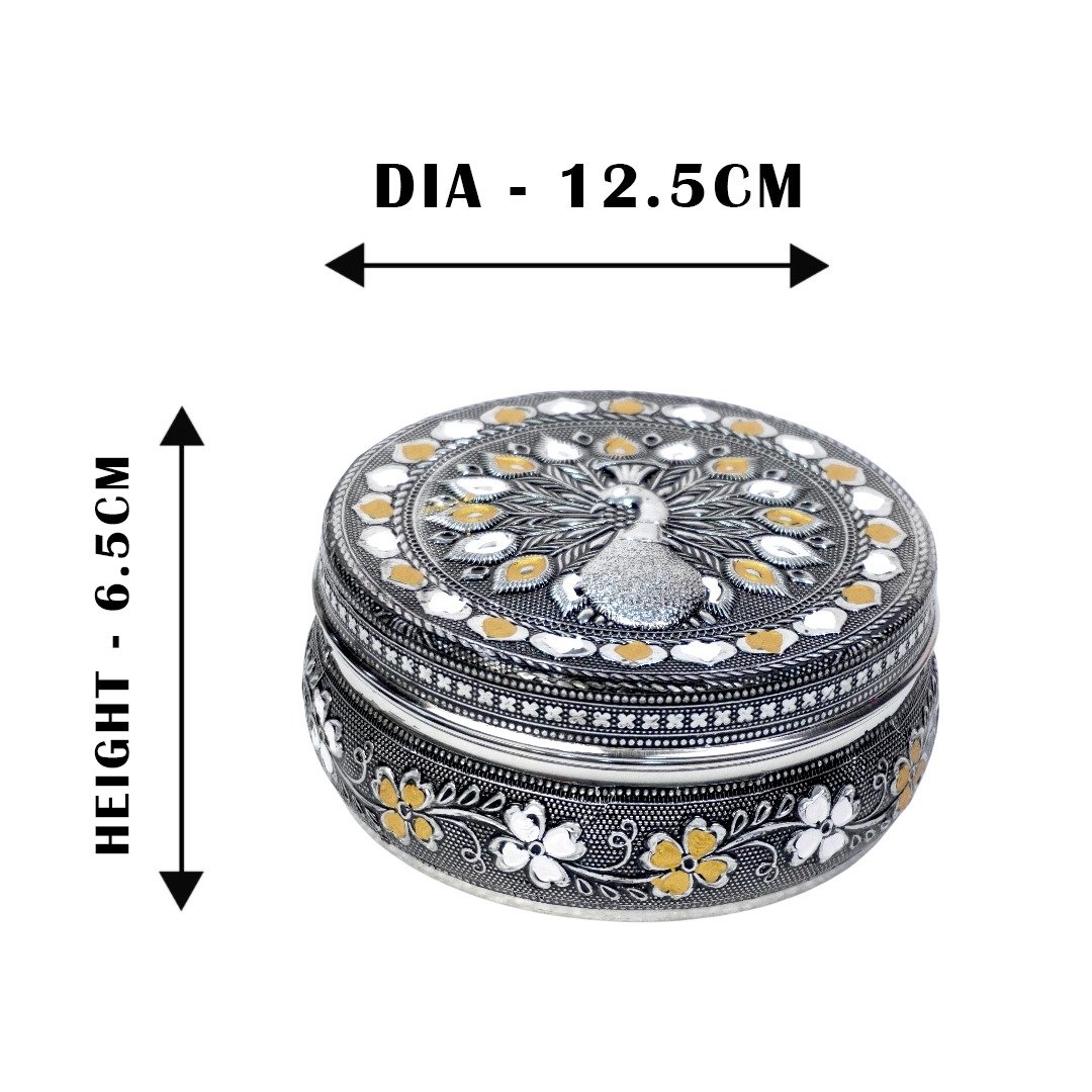 Meenakari steel flat storage container / puri dabba made from the finest stainless-steel material which ensures strength, quality and durability. This flat storage container is rust proof and hygienic.