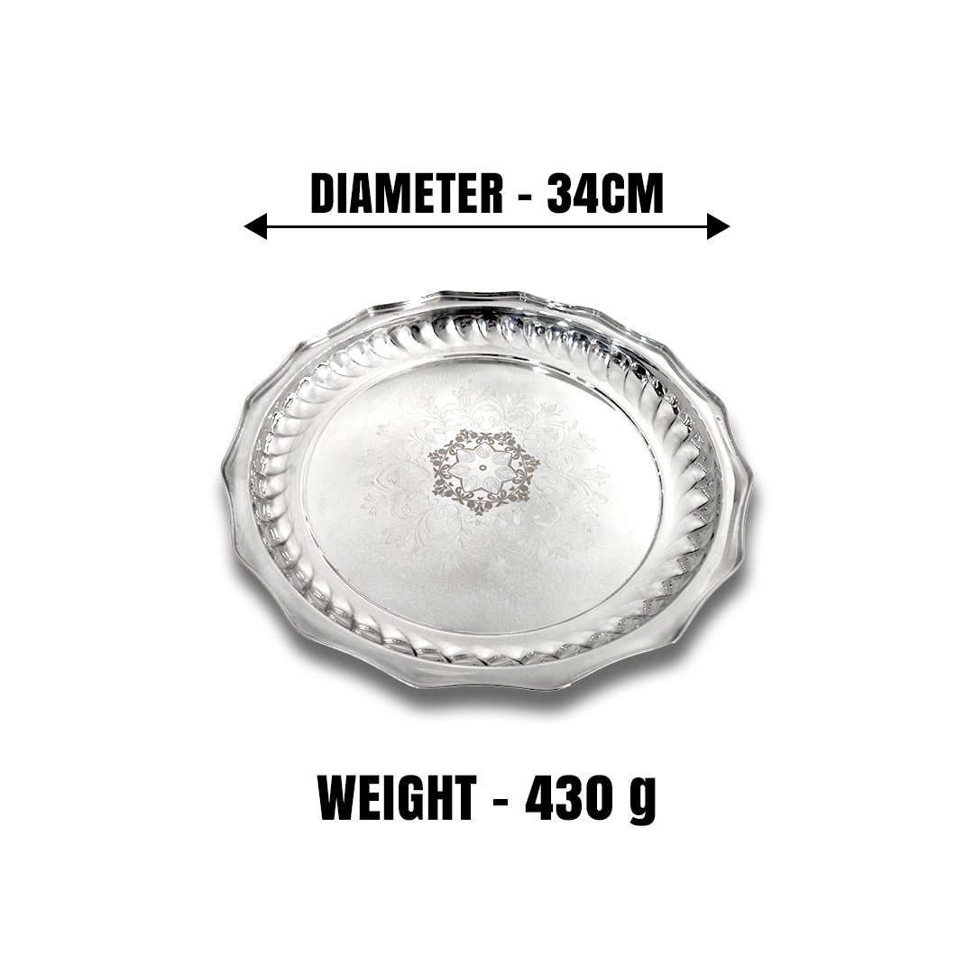 Stainless Steel Lazer Flower Thambala Plate 34cm