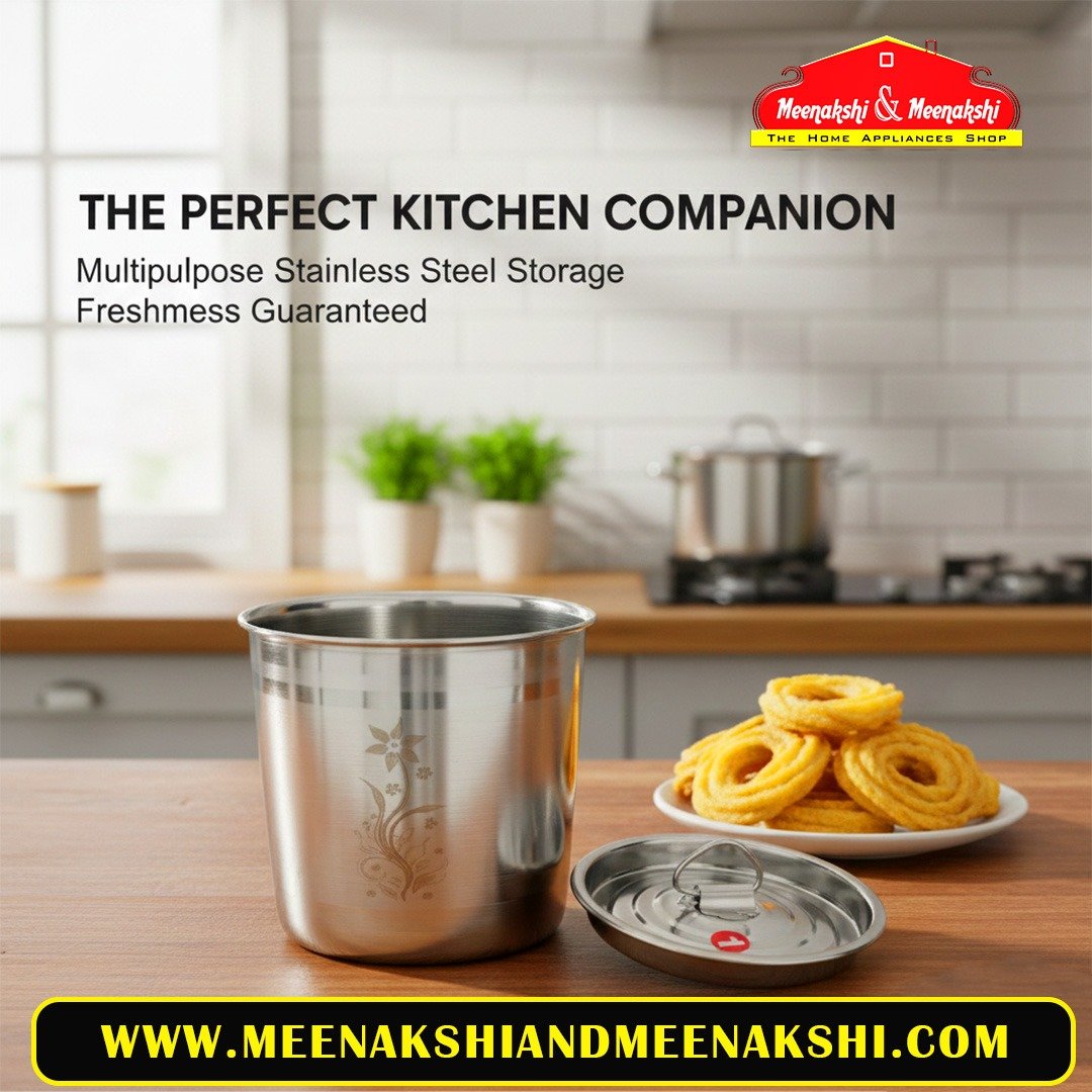 Airtight Muruku Dabba : Capacity - 1.8L, Height - 13cm, Dia - 14cm, Weight - 275g,