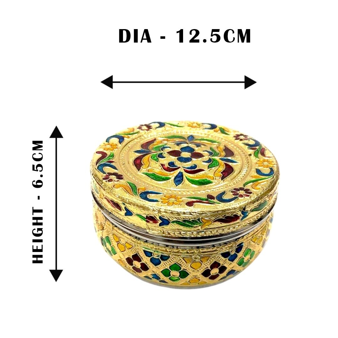Meenakari steel flat storage container / puri dabba made from the finest stainless-steel material which ensures strength, quality and durability. This flat storage container is rust proof and hygienic.