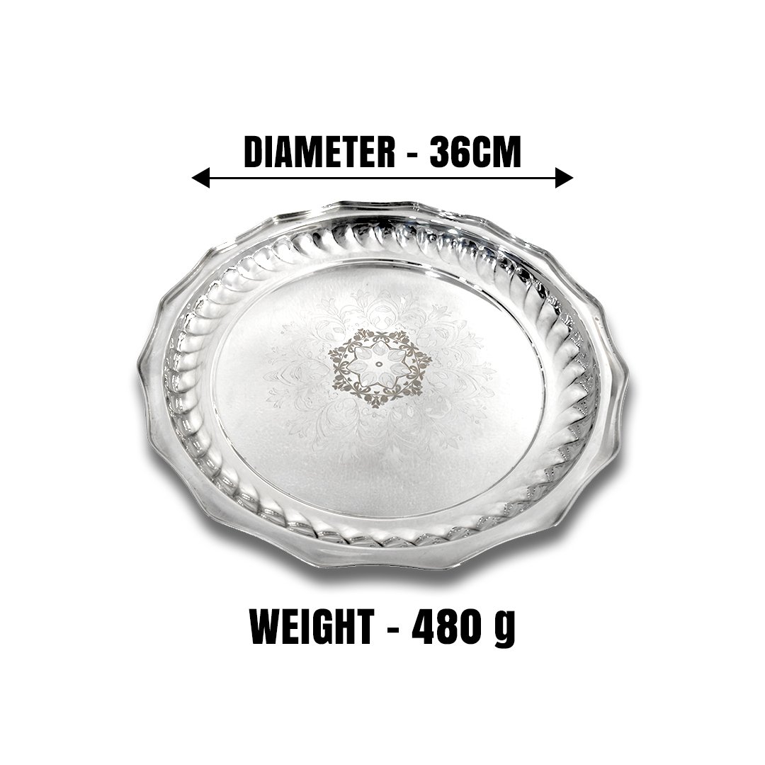 Stainless Steel Lazer Flower Thambala Plate 36cm