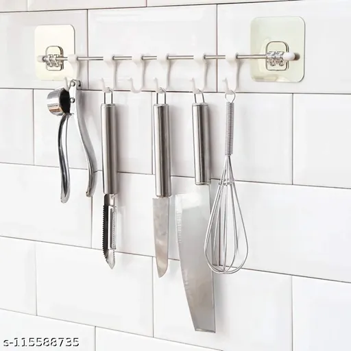 SS Multipurpose Self Adhesive Hook Rail Bar 1 Pcs