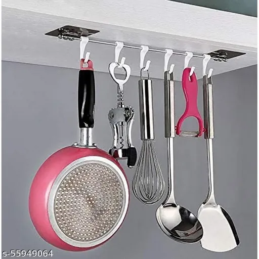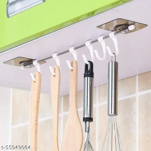 APPLICATION - Self-Adhesive Hook Strip with 6 Hooks for Homes, Kitchens, Offices, Changing Rooms, utensil rack, Doors, Storage Cabinet or Wash-Basin Tiles and Other Places