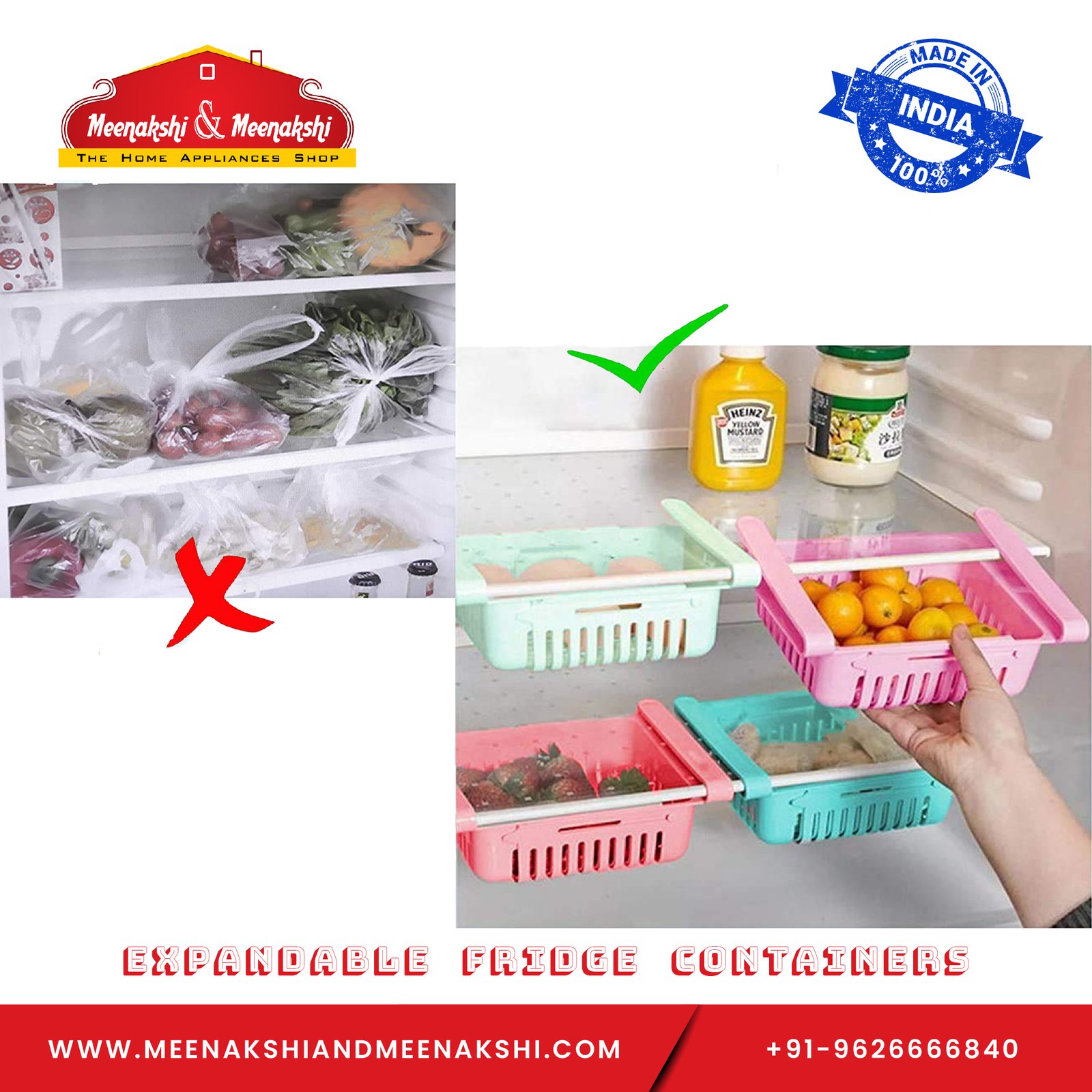 - Easy to use- Sliding design, easy to glide in and out the foods, Mount it on the compartment of your refrigerator, maximize the utility of space