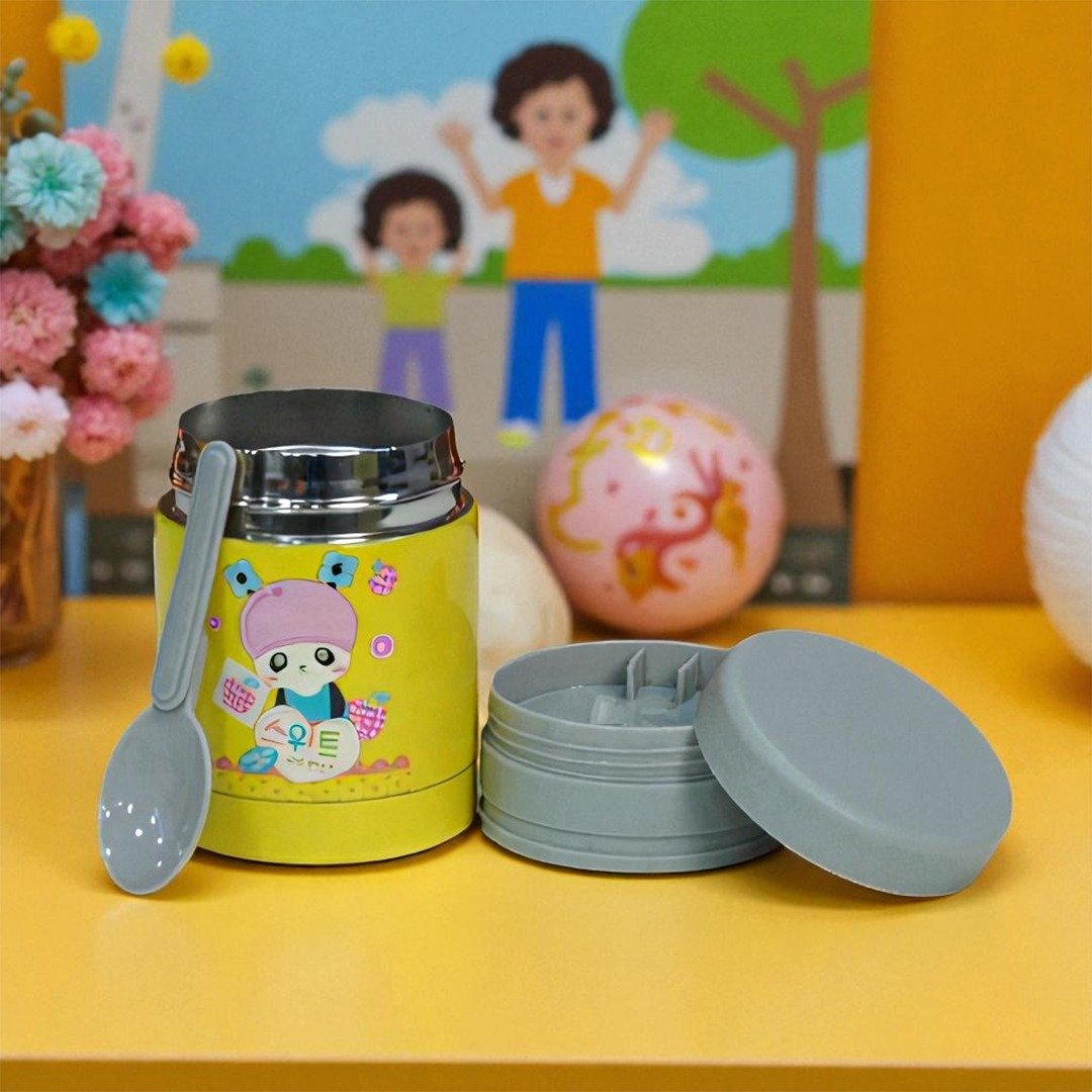 MM SS Food Jar With Spoon 380ml Yellow with Grey Bear MM3428