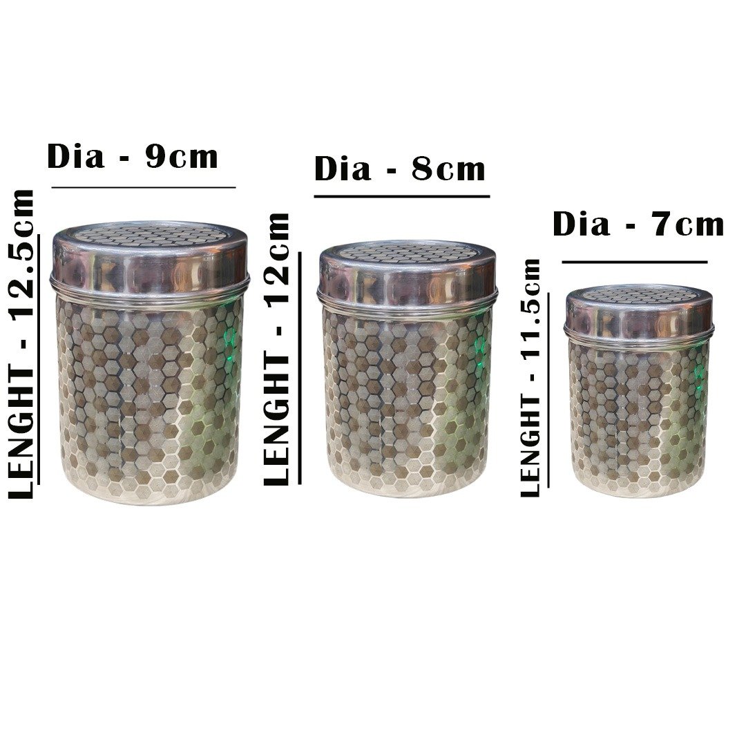 Sugar : Capacity - 750ml , Height - 12.5cm, Dia - 9cm, Weight - 210g.