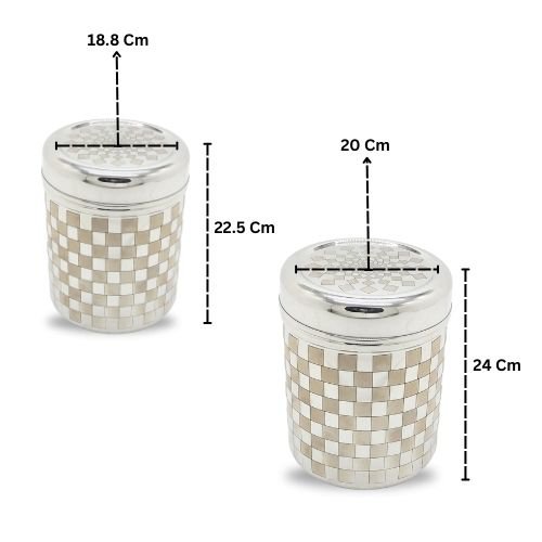 DESIGN AND FINISHING: With a silver elegant finish and long-lasting luster the dabbas have a wobble-free base. Their design is in chess shapen hence the name chess sambadam.
