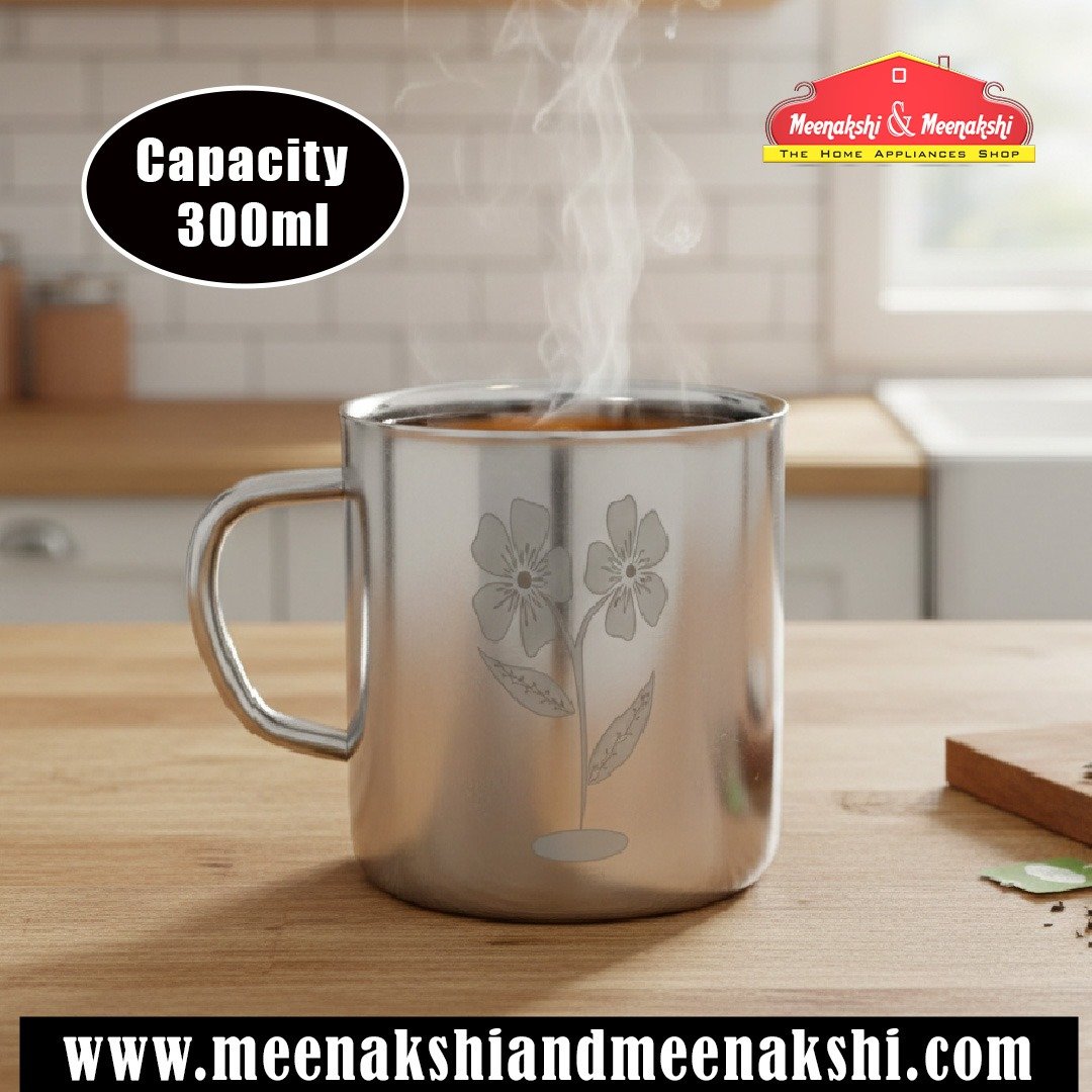Capacity - 300ml, Height - 9cm, Dia - 7cm, Weight - 165g.