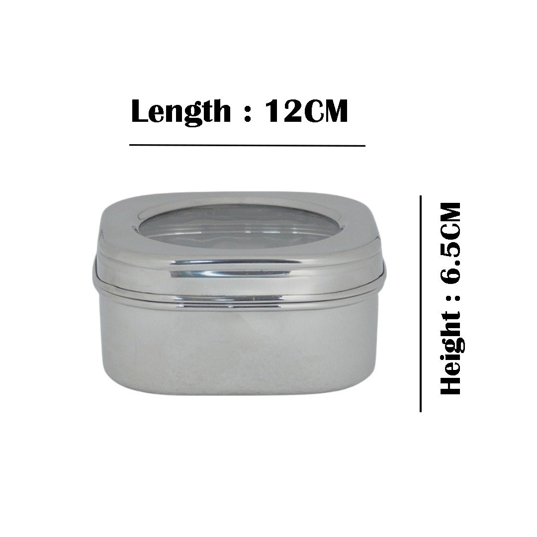 This stainless steel container is designed for durability and convenience. It features a clear glass lid that allows you to easily view contents without opening it. Ideal for storing spices, dry fruits, snacks, or small kitchen ingredients, its sleek and shiny finish adds a modern touch to any kitchen. The airtight seal helps keep contents fresh and protected from moisture.