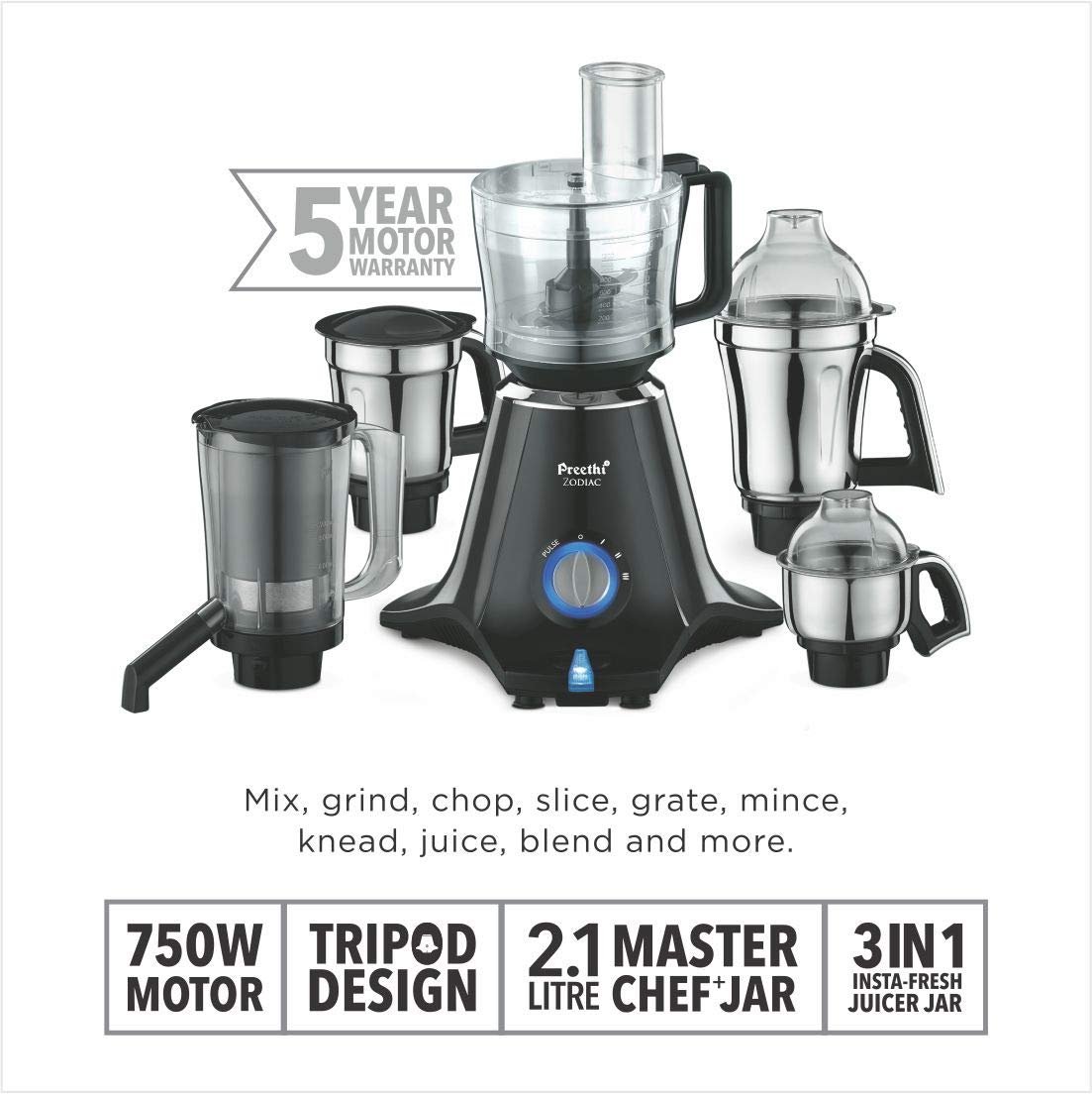 - This Preethi mixer grinder has a powerful motor that ensures robust operations
