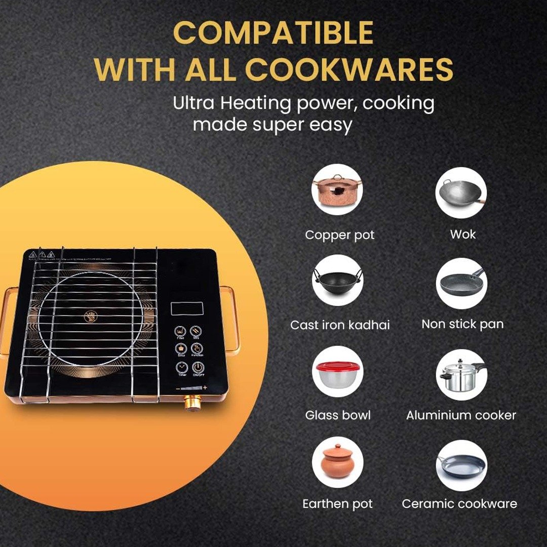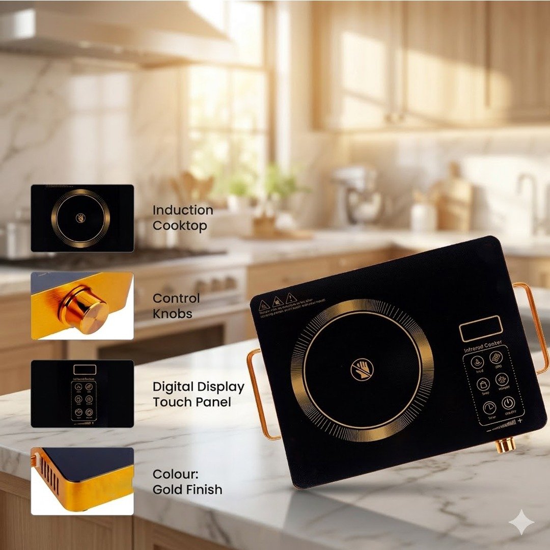 INDUCTION STOVE : Length - 36cm, Breadth - 28cm, Height - 6cm, Weight - 2.415Kg.