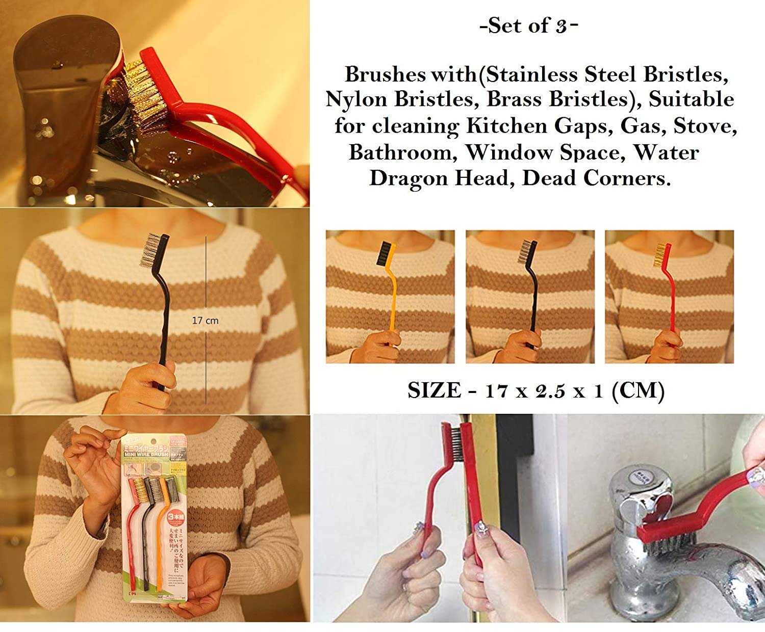 - Here is a 3 Pc. Mini Wire Brush Kit which can also be conveniently used for cleaning quite a lot of kitchen appliances like gas burner, taps, and so on.