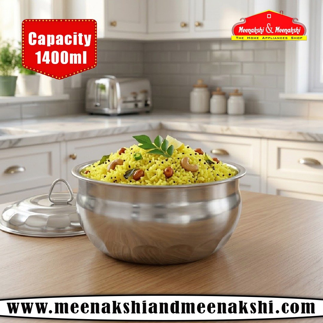 Capacity - 1400ml, Height - 10cm, Dia - 15cm, Weight - 165g.