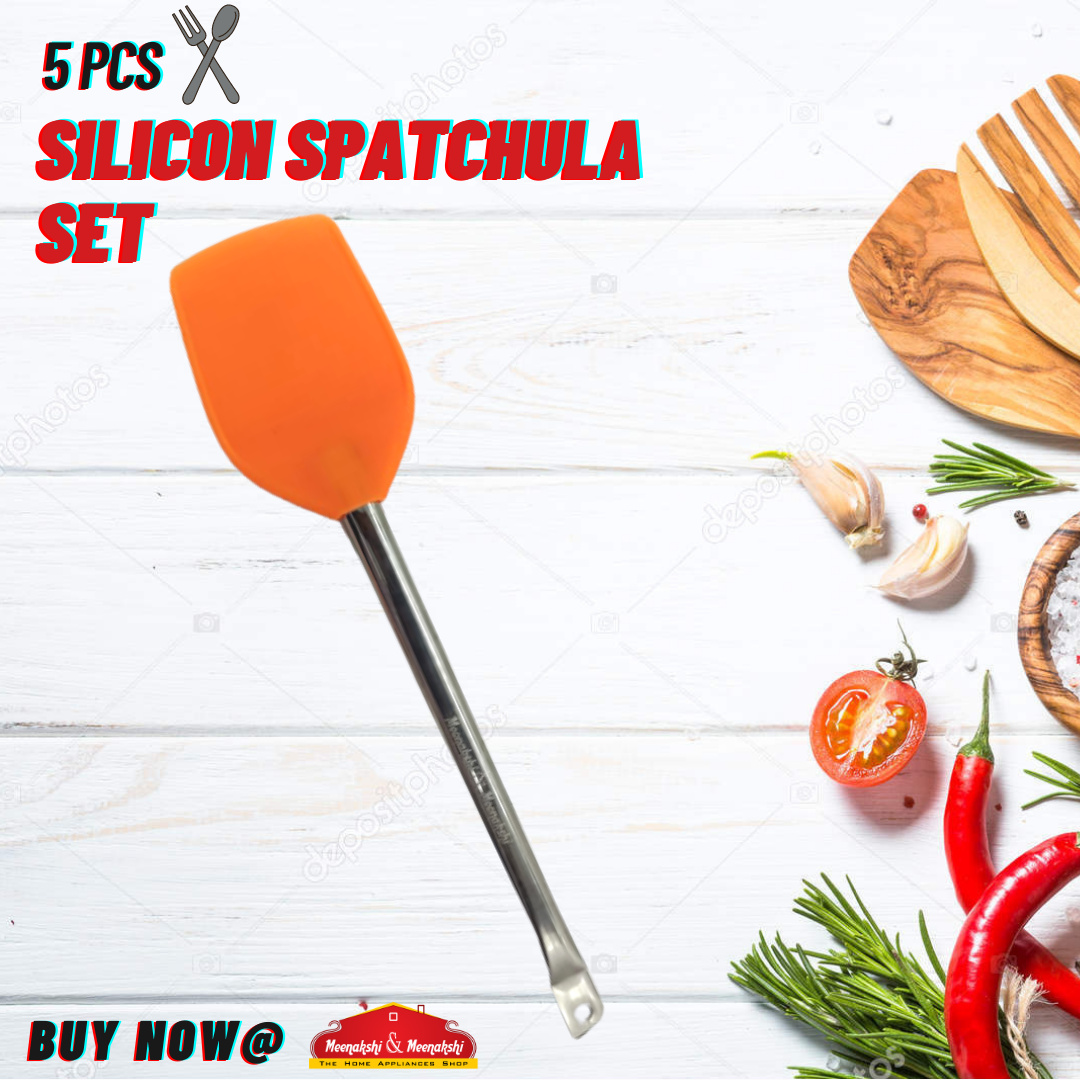 MM 5Pcs Silicon Spatula Set with Stainless Steel Handle