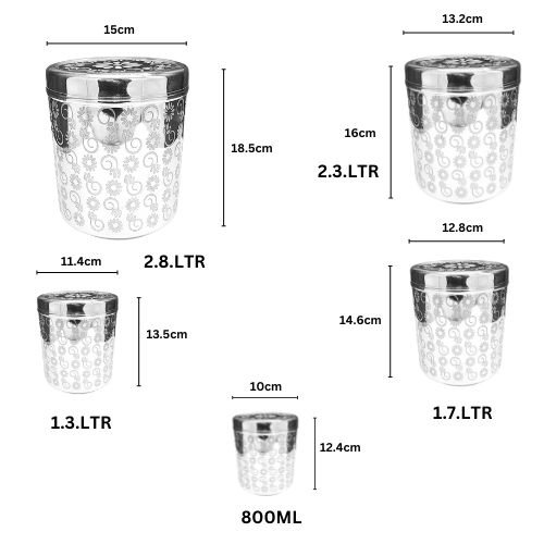 - DESIGN AND FINISHING: With a silver elegant finish and long-lasting luster the dabbas have a wobble-free base. Their design is simple yet usable.