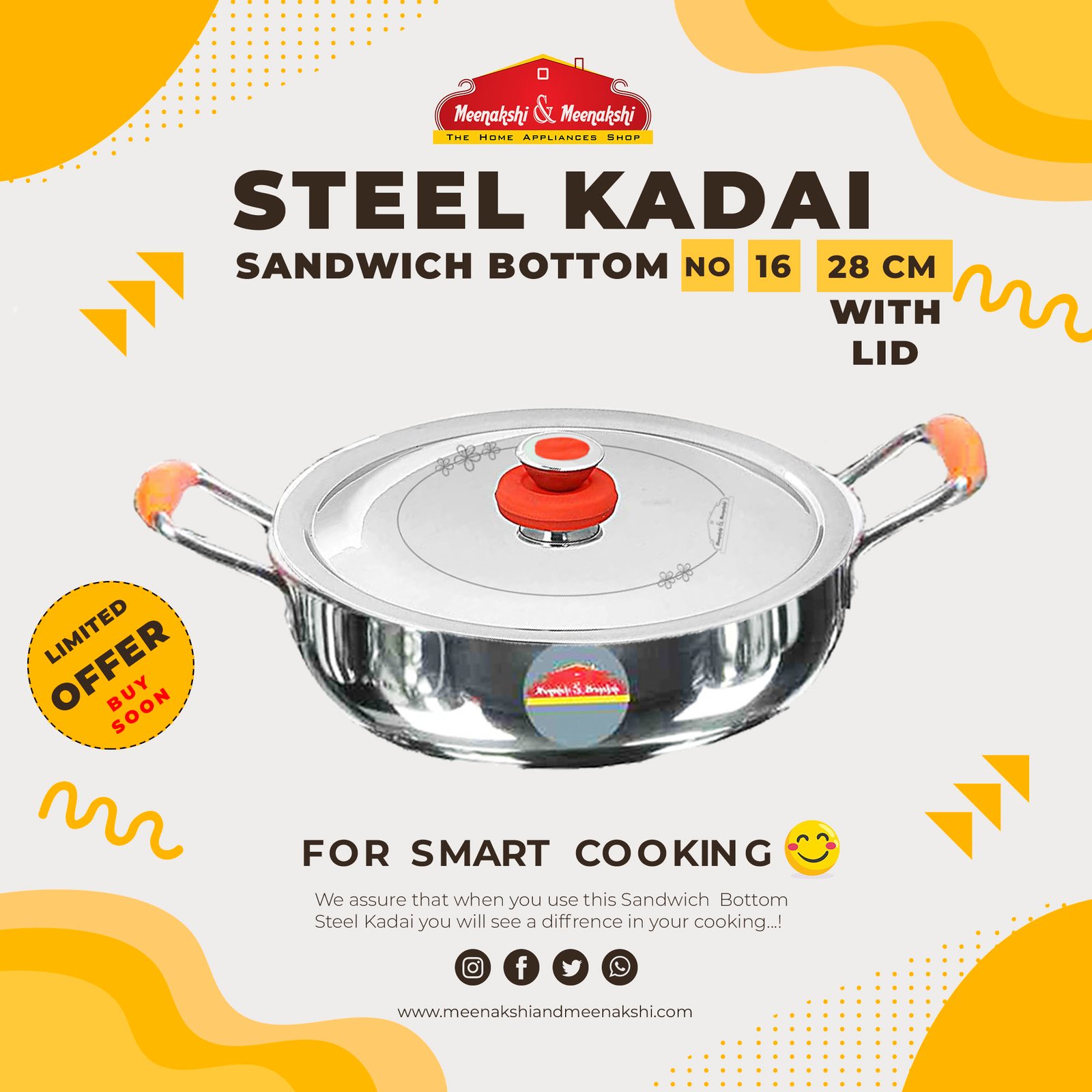 MM SS Sandwich Bottom Kadai No 16 with Lid