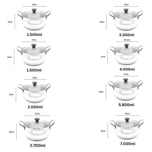 ML - 1000ml, 1500ml, 2000ml, 2700ml, 3300ml, 4000ml, 5800ml, 7000ml