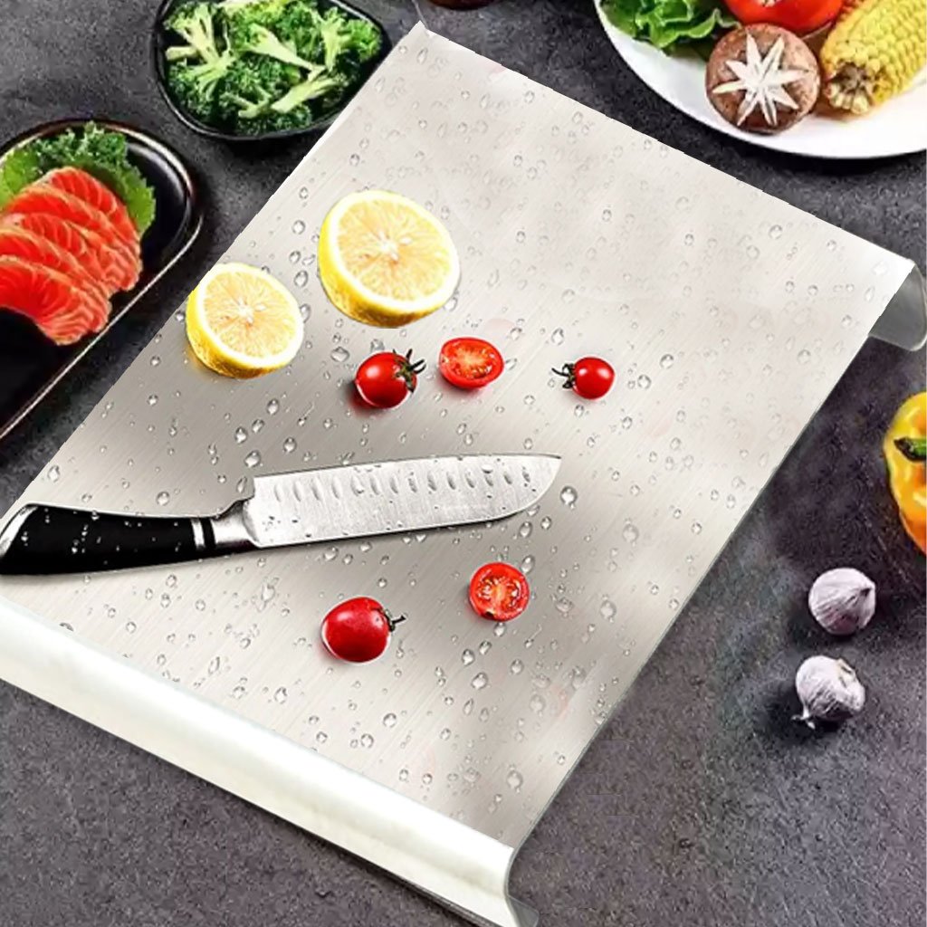 • SPECIAL DESIGN: This stainless steel curve cutting board is easy to clean, textured and smooth. Suitable for you to use for a long time
