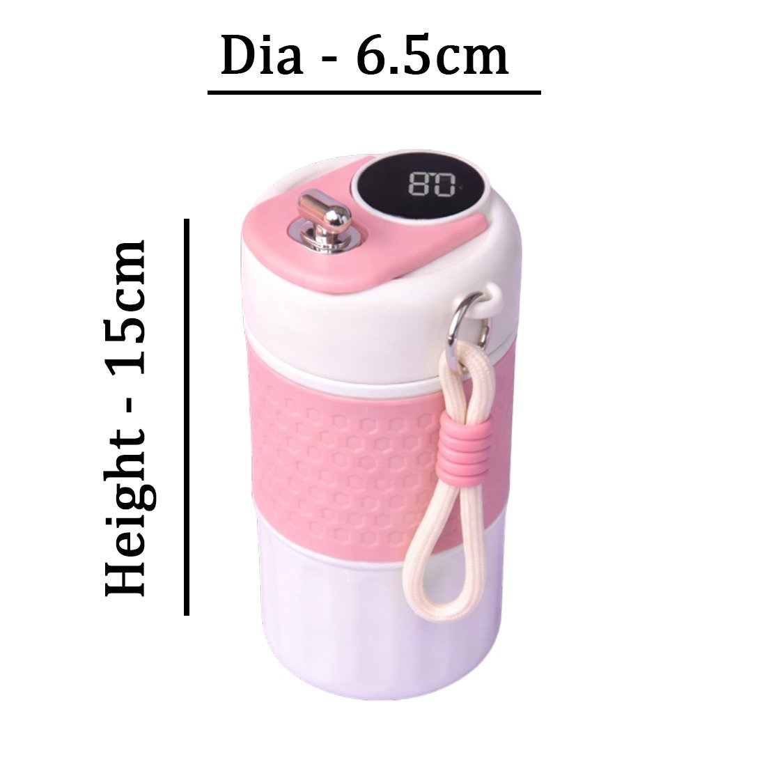It features a digital screen on the lid that shows the temperature of the beverage inside, allowing users to monitor the drink's warmth.