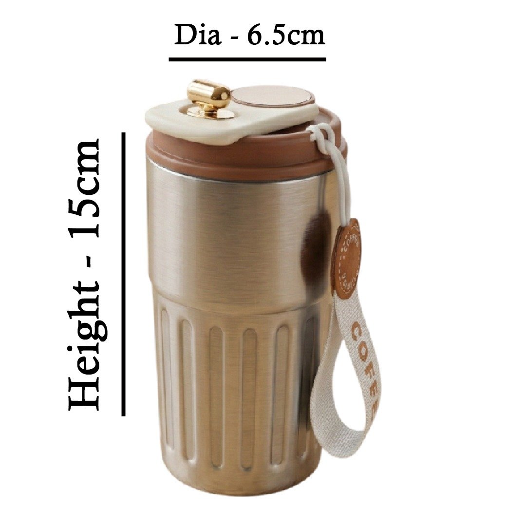 MM Ribbed Pattern Temperature Coffee Mug Silver with Brown MM3558