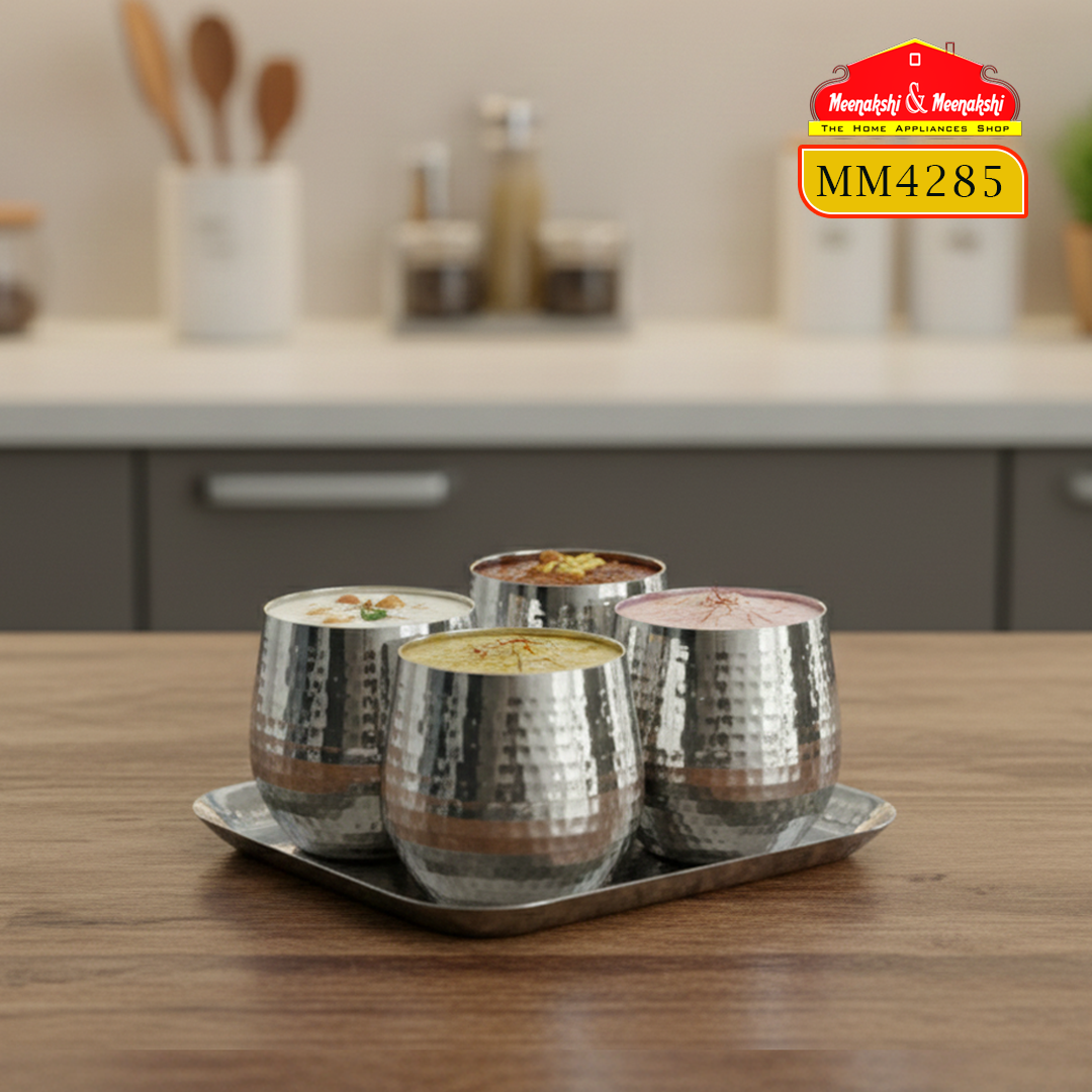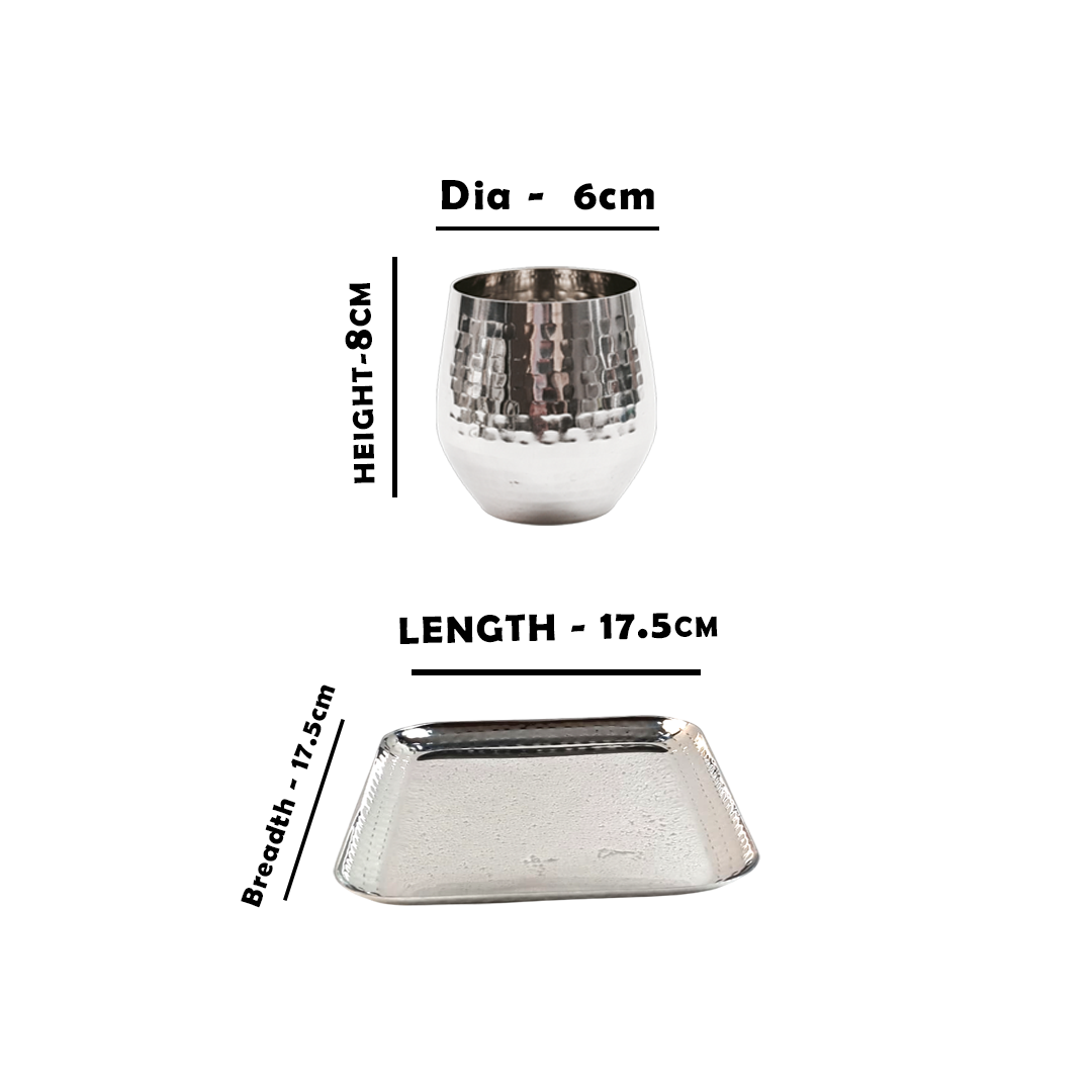 The set includes 4 premium stainless steel tumblers along with a matching serving tray, making it perfect for both daily use and special occasions.