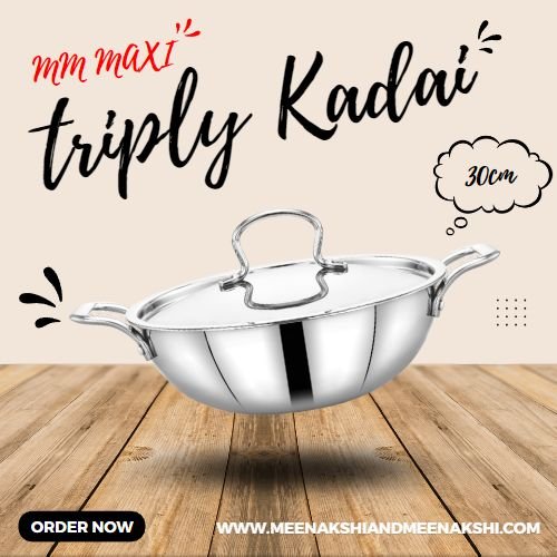 TRIPLY KADAI 30CM - H - 10cm, D - 30cm, Capacity - 5.6Ltr