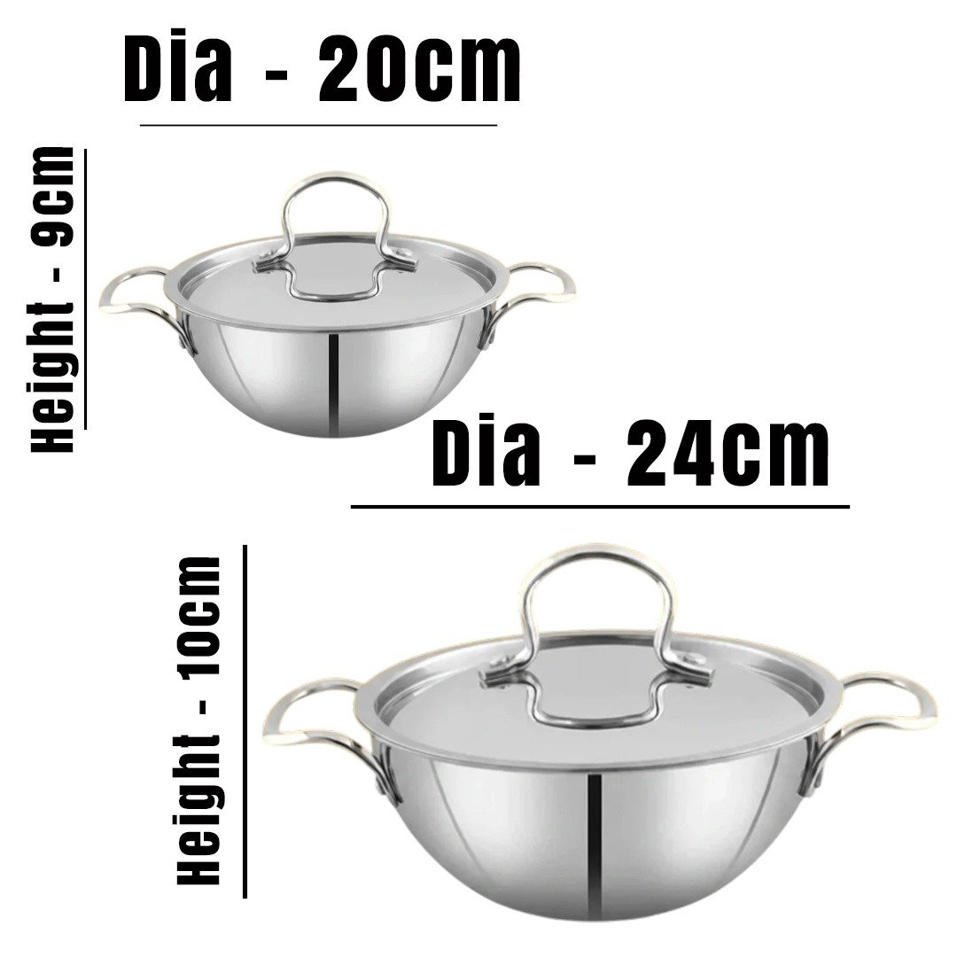 MM 3PCS Triply Extra Deep Kadai With Lid Combo MM4513