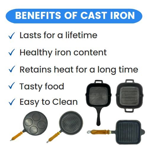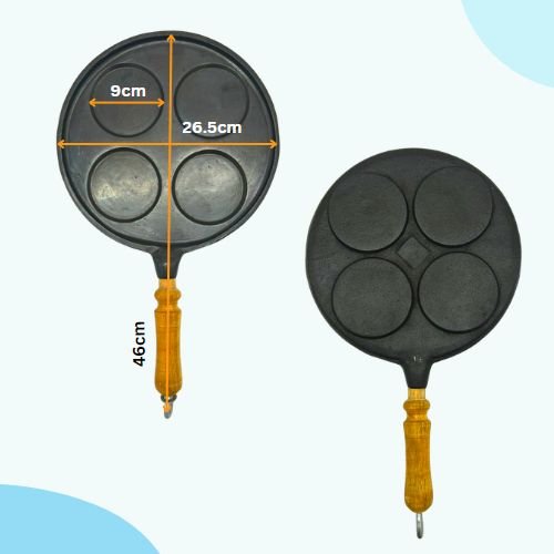 CAST IRON 4PIT UTTAPPAM TAWA WITH WOODEN HANDLE