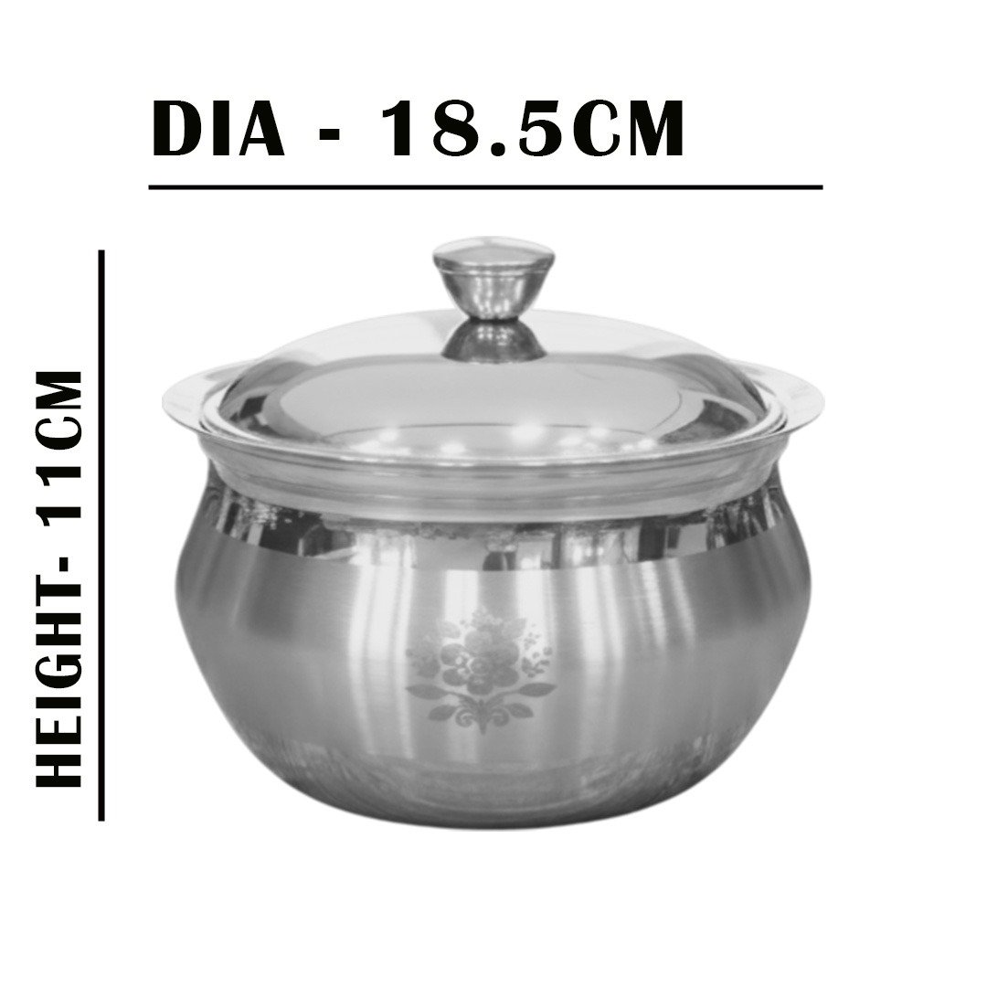 The pot has a mirror-finish exterior with a floral design for an elegant look, making it suitable for both daily use and special occasions.