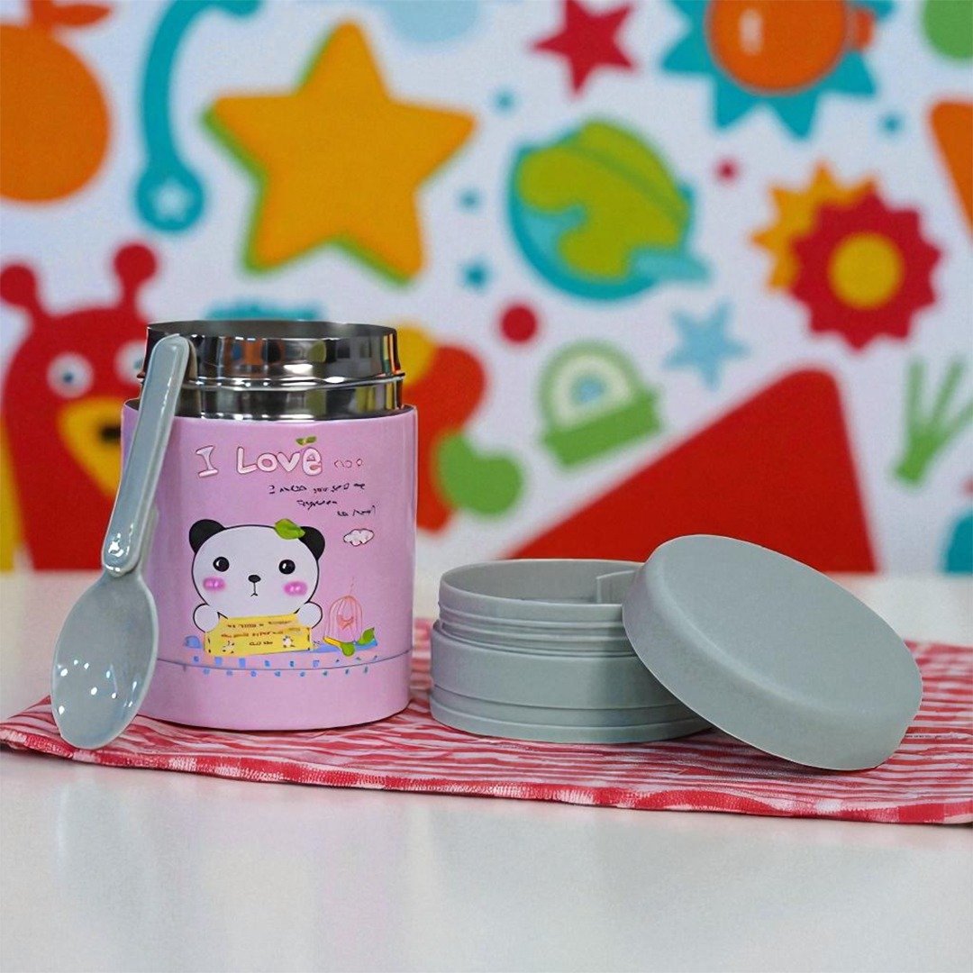 MM SS Food Jar With Spoon 380ml Pink with Grey Panda MM3430