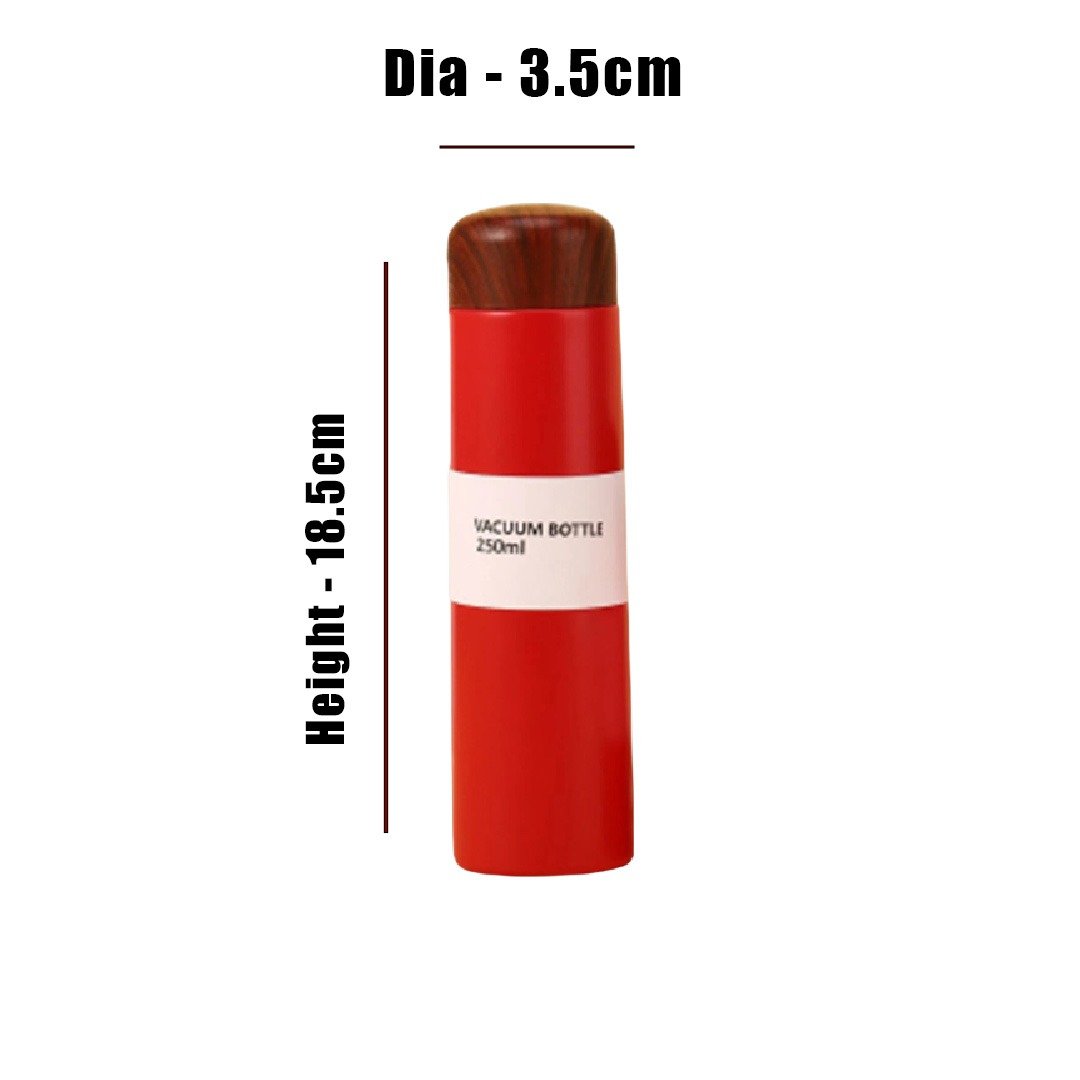 MM SS Vacuum Bottle Wooden Finish Cap 250ml Classic Red MM4573