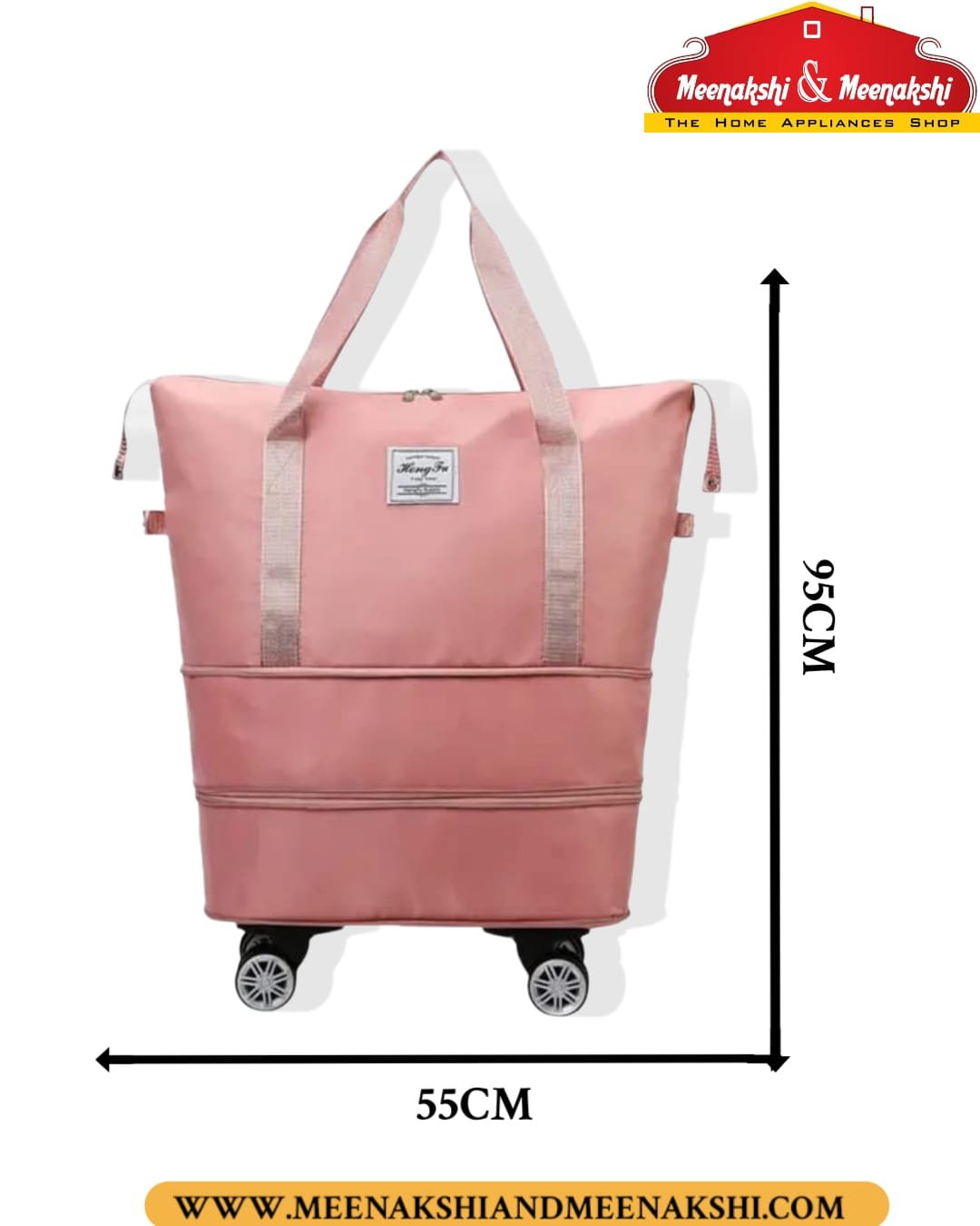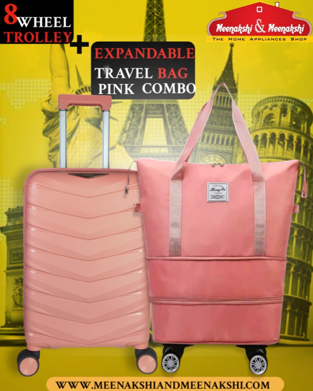 8 Wheel Trolly + Extendable Travel Bag Pink Combo MM1564