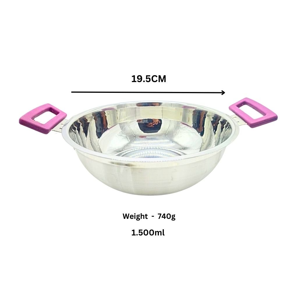 elegant, sturdy, carefully designed for handling comfort and safety. Suitable for, Deep-frying Puri, Samosa, Wada, French Fries, Pakora Stews, Curries and Korma, Upma, Poha Cooking vegetables, paneer, seafood, fish, chicken, meat Halwa, Rabri, Phirni, Semiya, Kheer