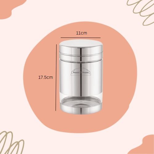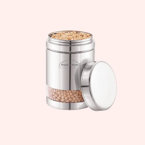Stores all your Contents in a Stainless Steel Twiste Jar with a Transparent See Through Part at the Lower End to see the Contents of the Jar through it and check Supply Levels of Food inside the Jar