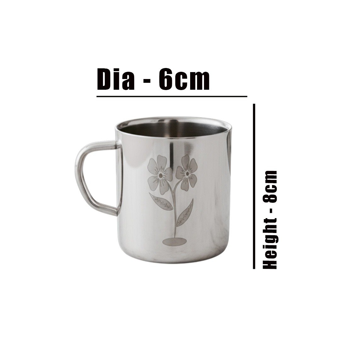 Capacity - 250ml, Height - 8cm, Dia - 6cm, Weight - 120g.