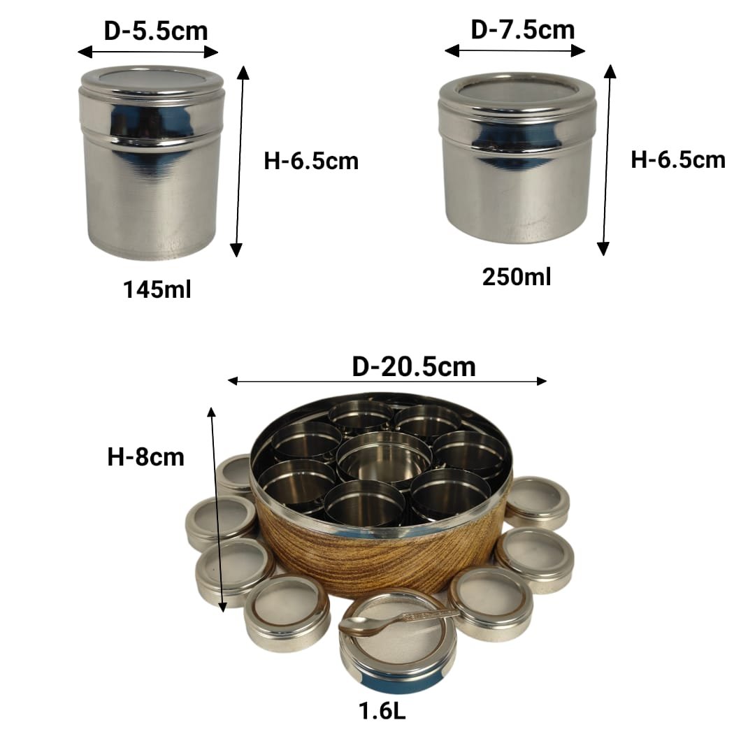 Stainless Steel 8 in 1 Wood finish Masala Dabba MM2238